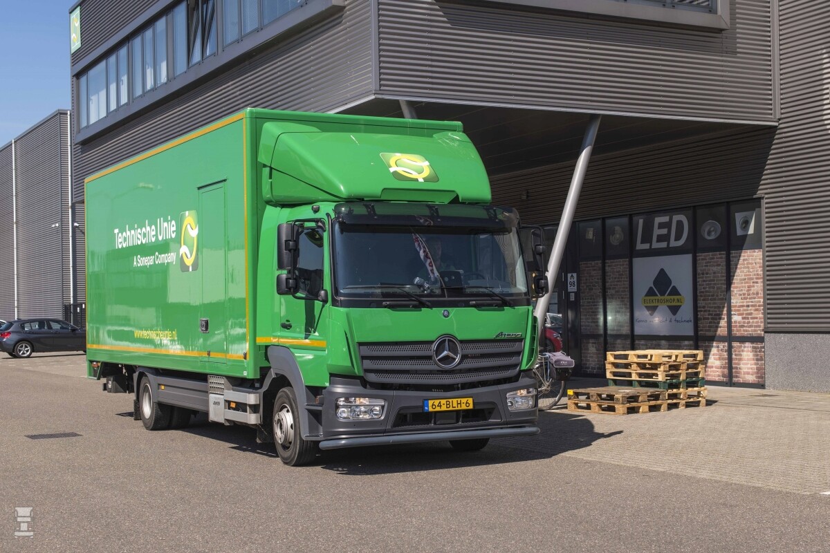 Het gaat om de tien- en twaalftons Atego distributietrucks die al jaren het gezicht van de vloot zijn. Wagenparkbeheerder Willem Kooijman: “De betrouwbaarheid en de aantrekkelijke kilometerkostprijs zijn terugkerende punten waarop de Atego scoort. Met een brandstofverbruik van gemiddeld 1 op 5,2 doen deze Mercedessen het echt heel netjes in dit werk met veertig tot vijftig stops per dag.” Naar verwachting zal het overgrote deel van deze raamovereenkomst bestaan uit de tientons variant, de Atego 1018. Voor de fijnmazige distributie van installatiematerialen zijn de Atego’s voorzien van een vaste opbouw met laadbak, stellingen in het kopschot, beugels voor lange materialen en een klaptrap voor het in- en uitstappen. Naar verwachting rijden de Atego’s op jaarbasis gemiddeld 35.000 kilometer.
