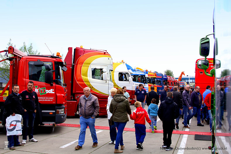 In totaal waren er rond de honderd vrachtwagens die niet alleen uit Nederland kwamen. Trucks uit onder andere België, Engeland, Oostenrijk en Zwitserland waren ook vertegenwoordigd. Het gaat hierbij om trucks die door Tekno als schaalmodel zijn uitgebracht. De dappere Scania P230 van Van der Dool waar onze Niels in het dagelijks leven mee werkt mocht dan ook niet ontbreken. Meer dan 4000 bezoekers kwamen dit jaar af op het unieke evenement in De Lier.