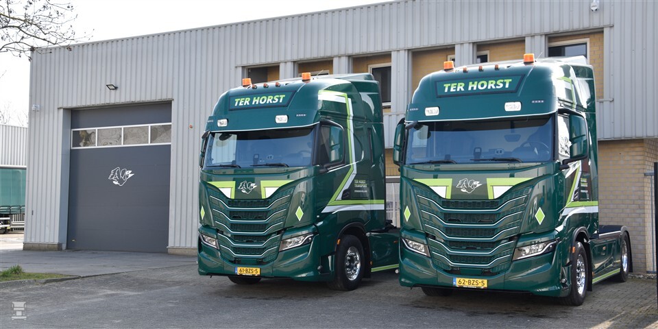 De Iveco S-Way trekkers van Ter Horst zijn uitgerust met een 500 pk sterke motor en een lage eindoverbrenging. De cabines zijn volledig ingericht voor internationale ritten, met voorzieningen zoals een bed, standairco, standkachel, koelkast en magnetron. Het bedrijf vervoert allerlei goederen en stelt zich flexibel op. Aan het begin van de week is regelmatig pas de helft van de planning gevuld. Het wisselen van trailers is heel normaal bij Ter Horst.