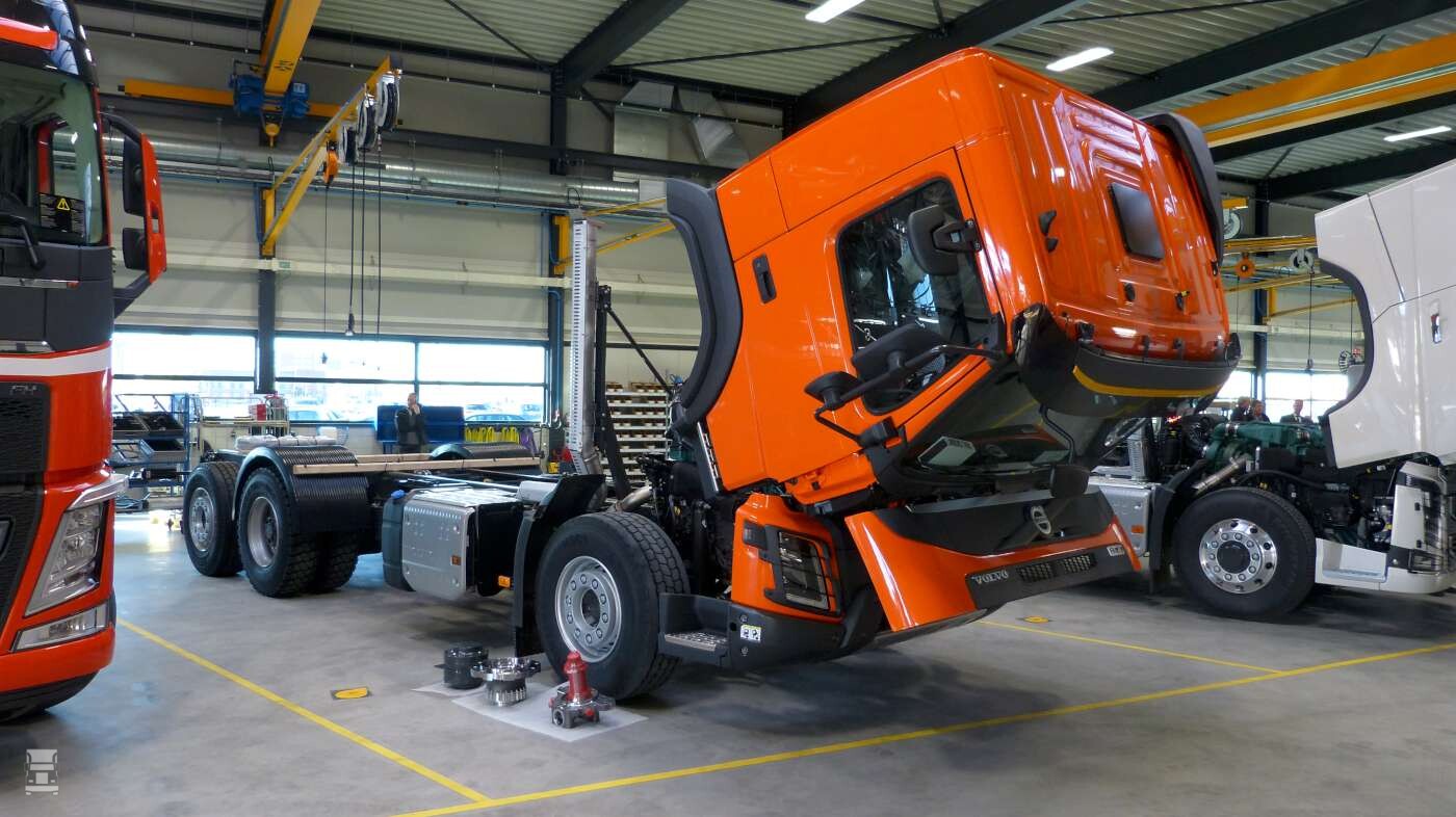 · Een tweetal Volvo’s FH16 met 750 pk gereed voor levering naar Spanje. De ene truck liet het eindresultaat zien: Tridem, bladvering en meesturend as. De andere hoe hij vanaf de Volvo-fabriek gedeeltelijk voorbereid naar Terberg toe komt.
