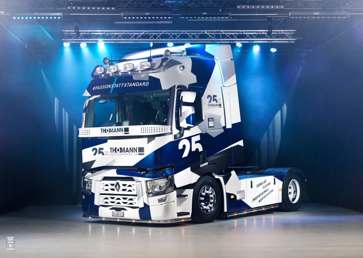 De Zwitserse Renault truckdealer Thomann Nutzfahrzeuge heeft op geheel eigen wijze zijn 25-jarig jubileum gevoerd. Eerder al maakte deze dealer indruk met speciale varianten van de Renault T. Logisch dat ook nu weer creatief werd gevarieerd op dat thema.