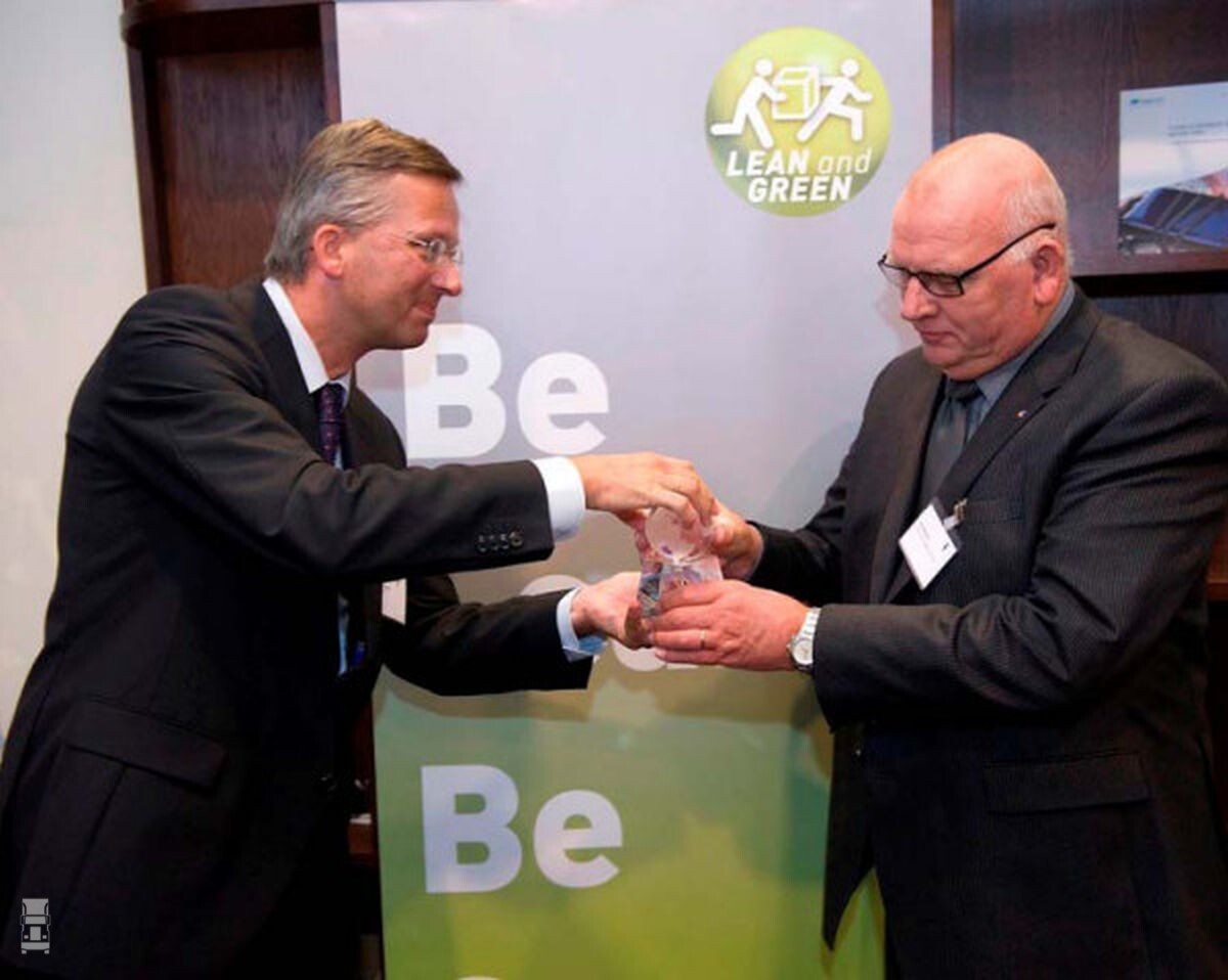 Op de foto krijgt Bosman, rechts, de Leand & Green Award uitgereikt.
