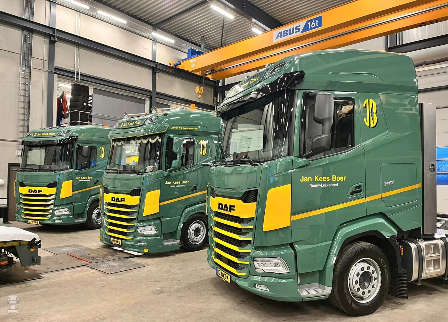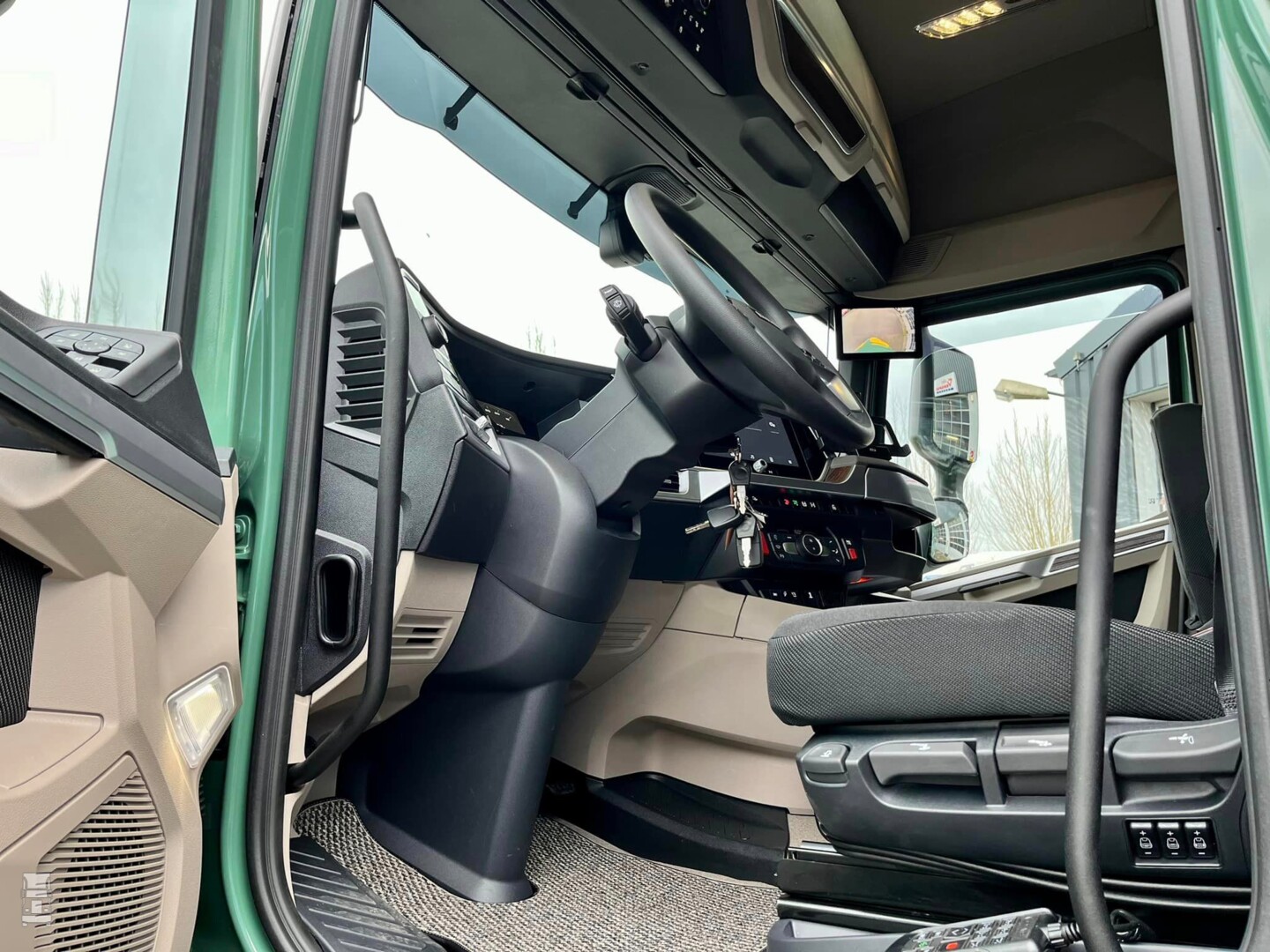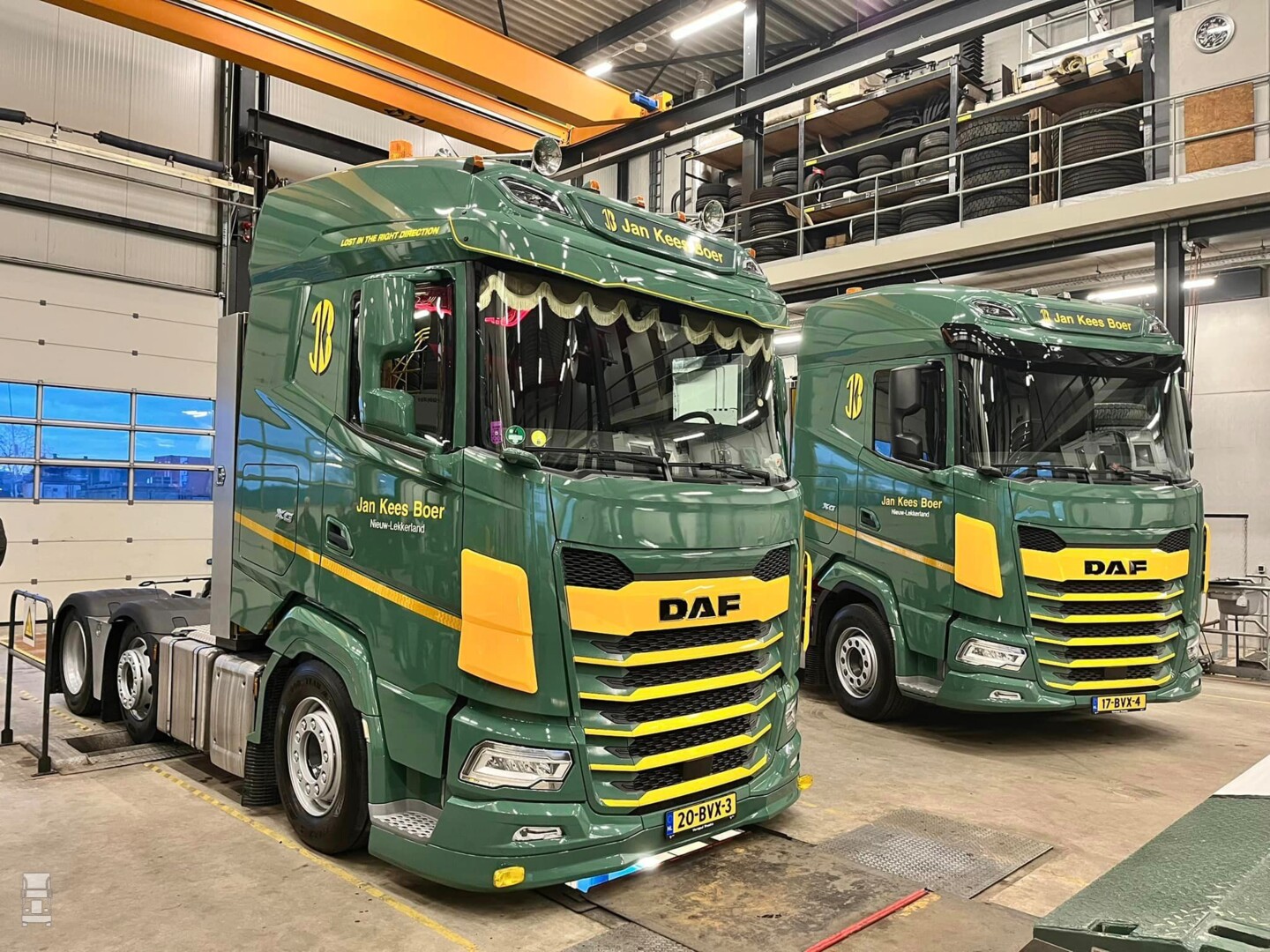 De cabines zijn ook bijzonder compleet uitgerust, met onder meer hoekschildjes, in kleur gespoten zonnekleppen, een LED lichtbak en een extra onderspoiler. Alles bij elkaar bijzonder luxe werkpaarden!