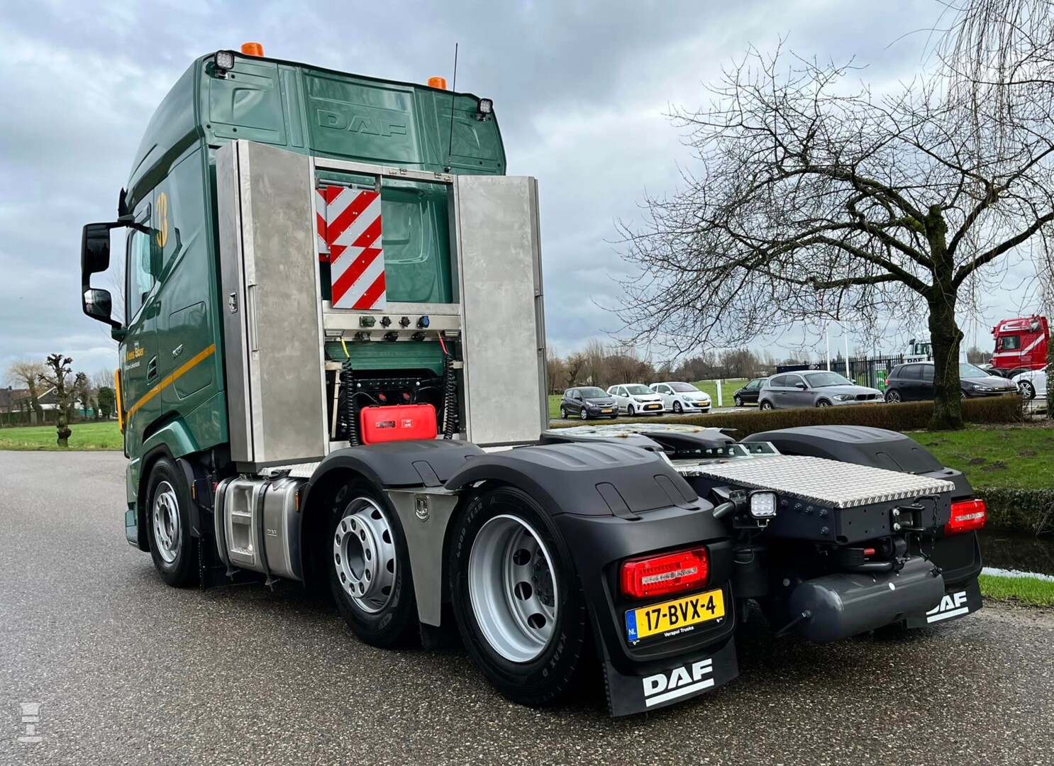 Verder zijn de trucks uitgerust met een pneumatische hef-schuifschotel, extra werkverlichting, demontabele Convoi Exceptionnel borden en een extra brandstoftank. Ook zijn er opbergkisten aangebracht tussen de spatborden.