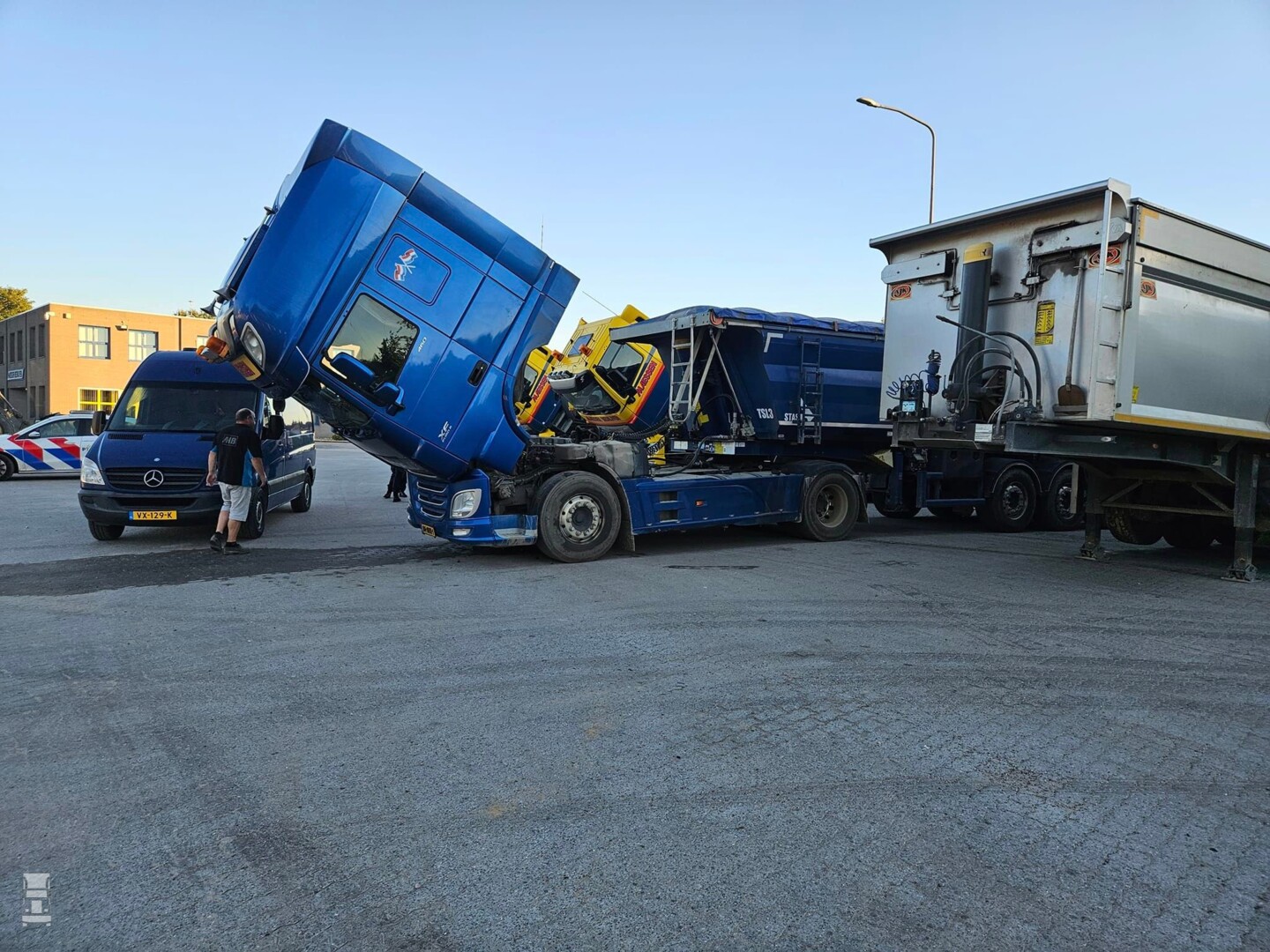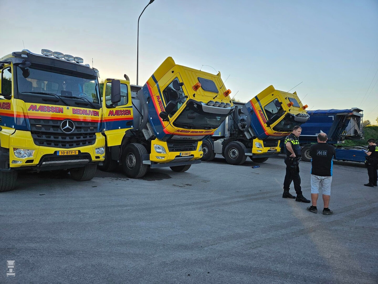 Deze keer gaat het niet om carrosseriedelen zoals grilles, deuren en spiegels maar om technische onderdelen. Zo werden DAF's en een Mercedes truck ontdaan van EGR kleppen, motor computers en zelfs een turbo. Alleen bij de Mercedes verdween ook de tachograaf. Voor wat betreft het verwijderen van de motor onderdelen is het eenvoudig, want de cabines zijn vaak simpel te kantelen waardoor iedereen toegang heeft tot de techniek. De politie heeft een onderzoek ingesteld en vraagt eventuele getuigen zich te melden. (Foto's Facebook)