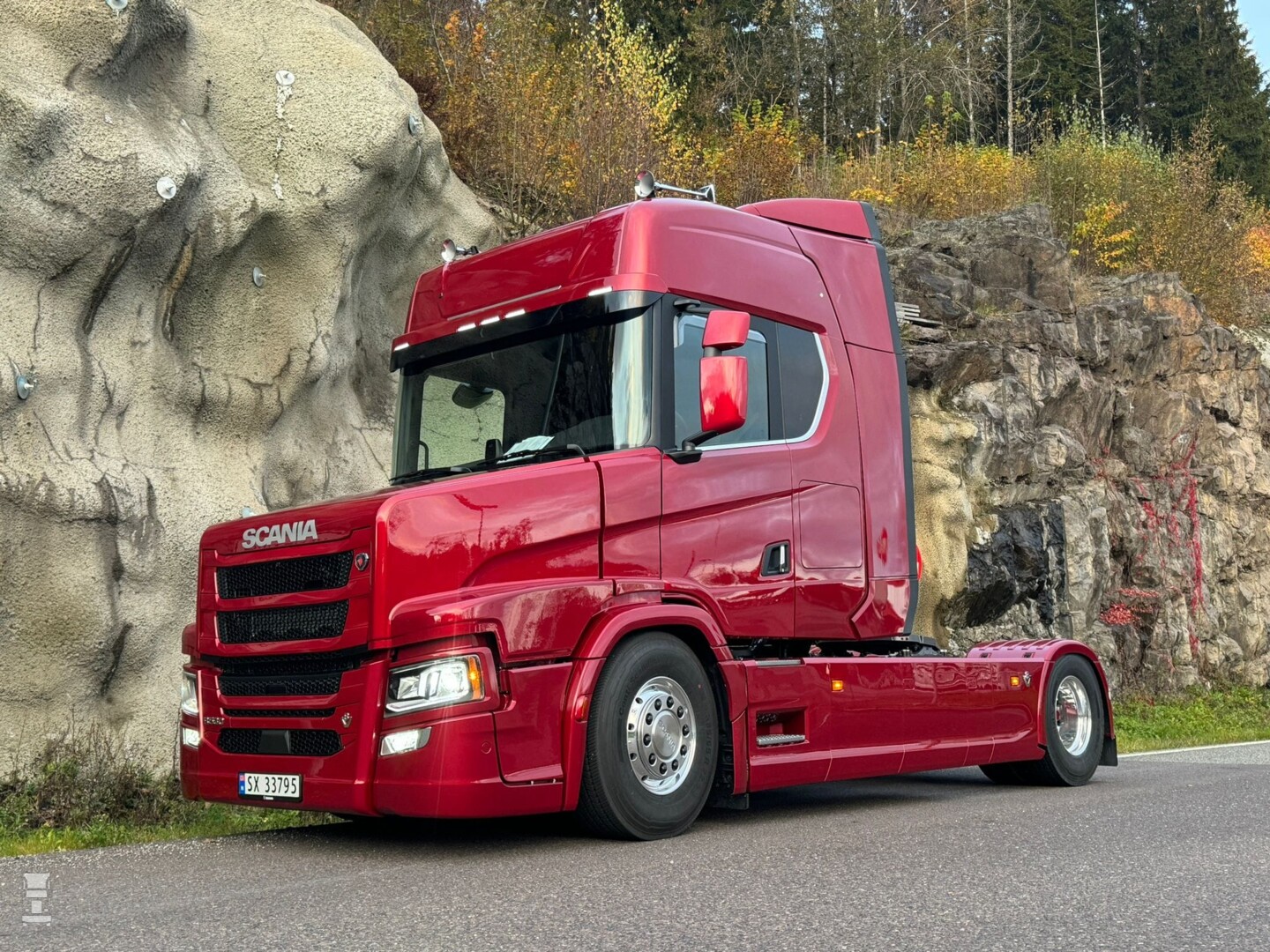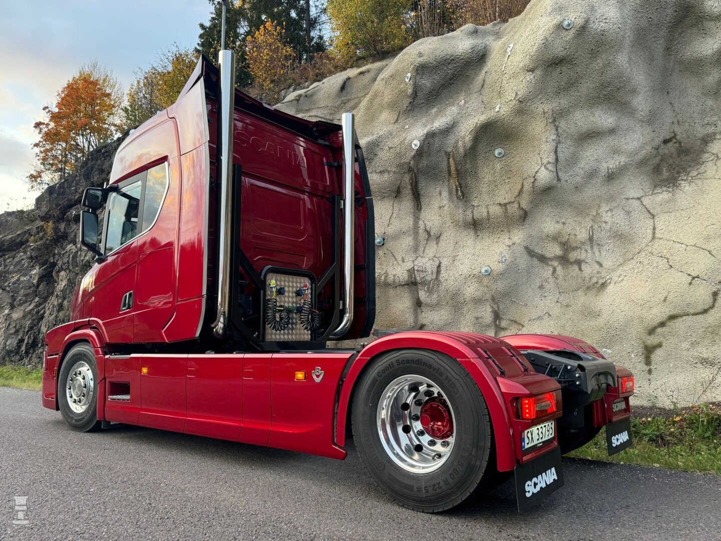 Tuft bouwt de torpedo Scania's zowel met een S- als, zoals hier met een R- cabine. Die staat wat lager op het chassis en past daarmee erg fraai achter die mooie Noorse neus. Een neus die een beetje doet denken aan de Scania 3- serie Torpedo modellen. Dat komt vooral door de spatborden en de wat slankere neus, die bovendien aan de voorkant iets doorloopt voor de bumper. Overigens worden deze Tuft Torpedo modellen ook in Nederland gebouwd, klik hier voor dat verhaal!