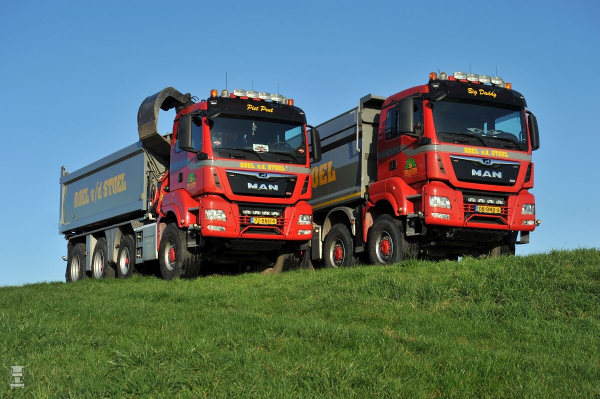 Aannemings- en Transportbedrijf Roel van der Stoel uit Wijdewormer nam onlangs twee nieuwe MAN TGS bouwvoertuigen in gebruik. Het gaat om een 8x6 met een autolaadkraan en een afzetsysteem en om een 10x8 met kipperopbouw. Beide trucks rijden inmiddels al vier maanden naar volle tevredenheid van zowel de chauffeurs als van directeur-eigenaar Erik van der Stoel.