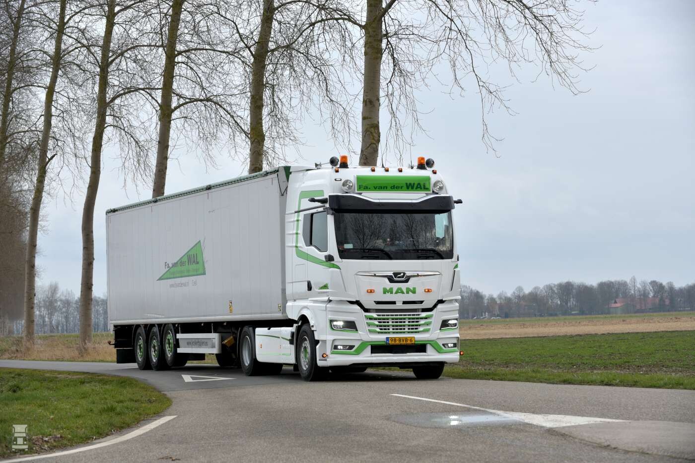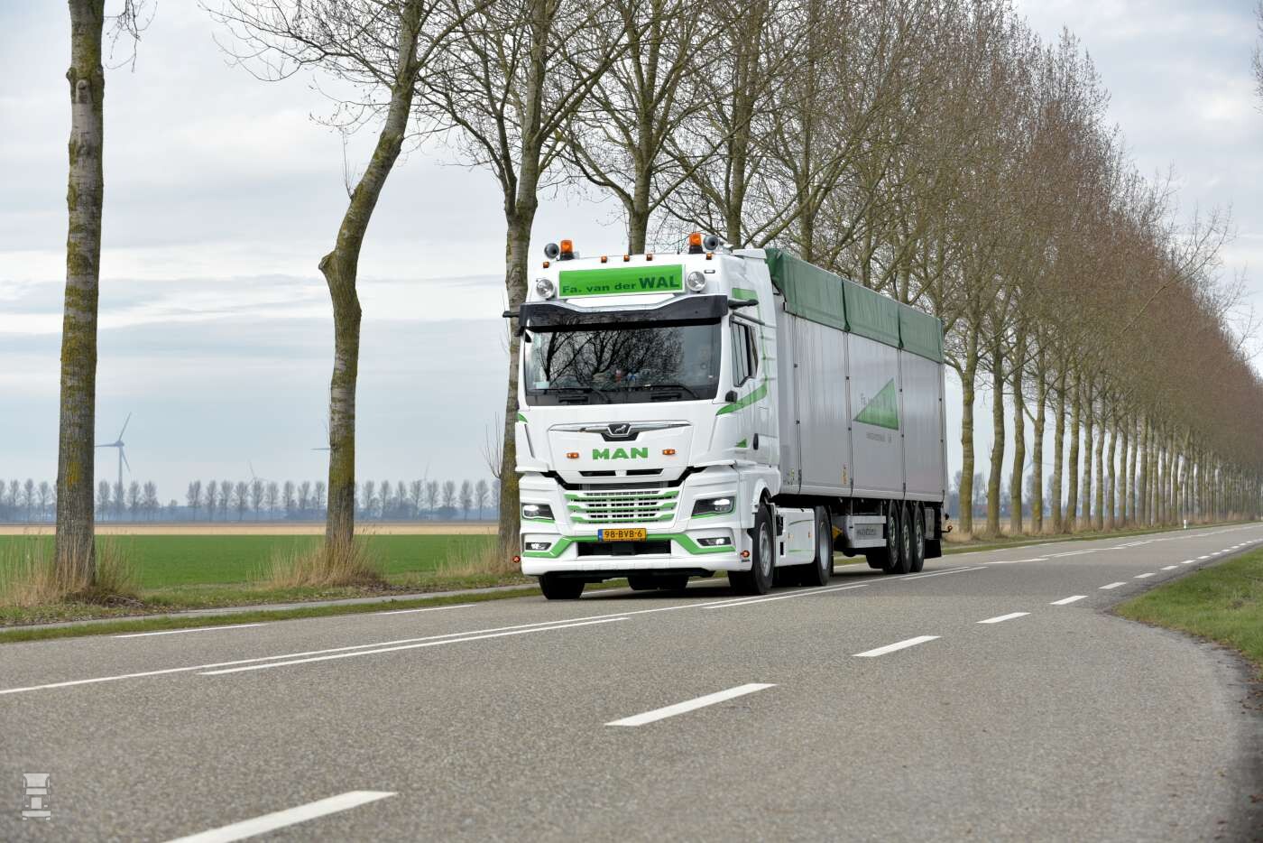 De 510 pk sterke trekkers zijn voorzien van een PTO met een hydrauliekset voor de moving-floor-opleggers. De volledig luchtgeveerde trekkers zijn uitgevoerd met een 390 cm wielbasis en vele gepersonaliseerde opties, zoals een fraaie lichtbak met daklampen, extra verlichting rondom en een set stevige luchthoorns. De kleurstelling van Van der Wal ziet er bijzonder strak en fris uit, zeker in de sneeuwbuien tijdens de aflevering. De afwerking is door Van der Wal met veel zorg samengesteld, met onder meer de gespoten wielen. De trucks werden opgebouwd en geleverd door MAN-dealer Wierda Bedrijfswagens.