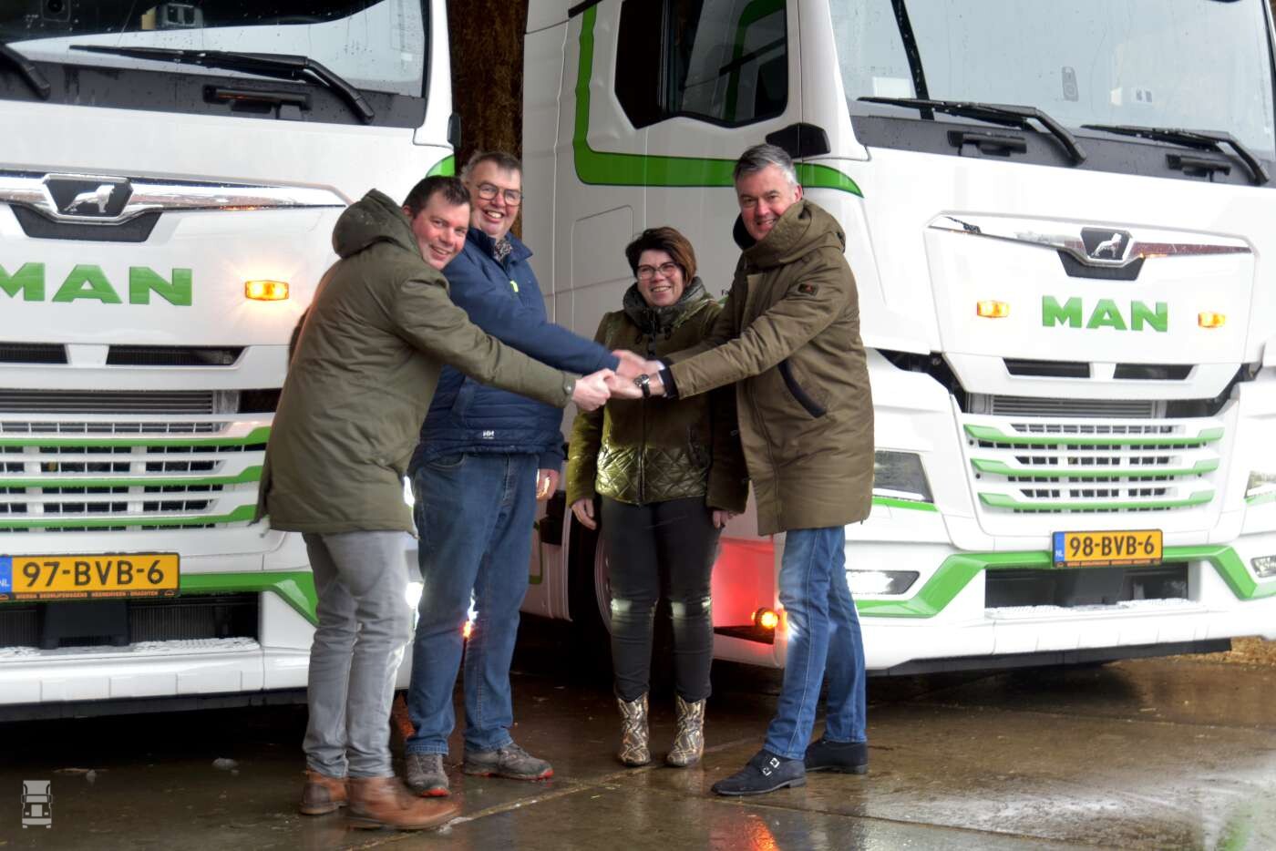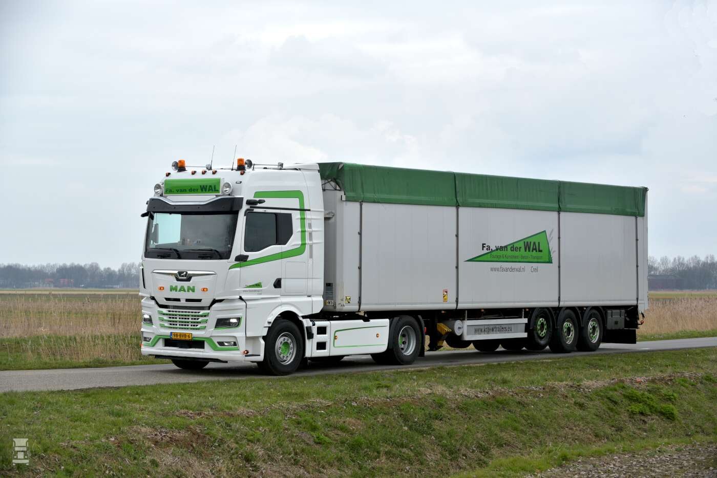Fa. Van der Wal houdt zich bezig met de handel in fourage, ruwvoeders, kunstmest en betonproducten voor de agrarische sector. Daarnaast vervoert het bedrijf goederen voor derden. Het wagenpark omvat op dit moment zeven trekker-units met moving-floor-trailers, stenentrailers, schuifzeilopleggers en een semi-dieplader. De trucks rijden nationaal en internationaal. Dat is ook de reden waarom Fa. Van der Wal bij de aanschaf van de twee nieuwe TGX 18.510 trekkers heeft gekozen voor de grootste MAN-cabine, de GX-uitvoering, compleet met standairco.