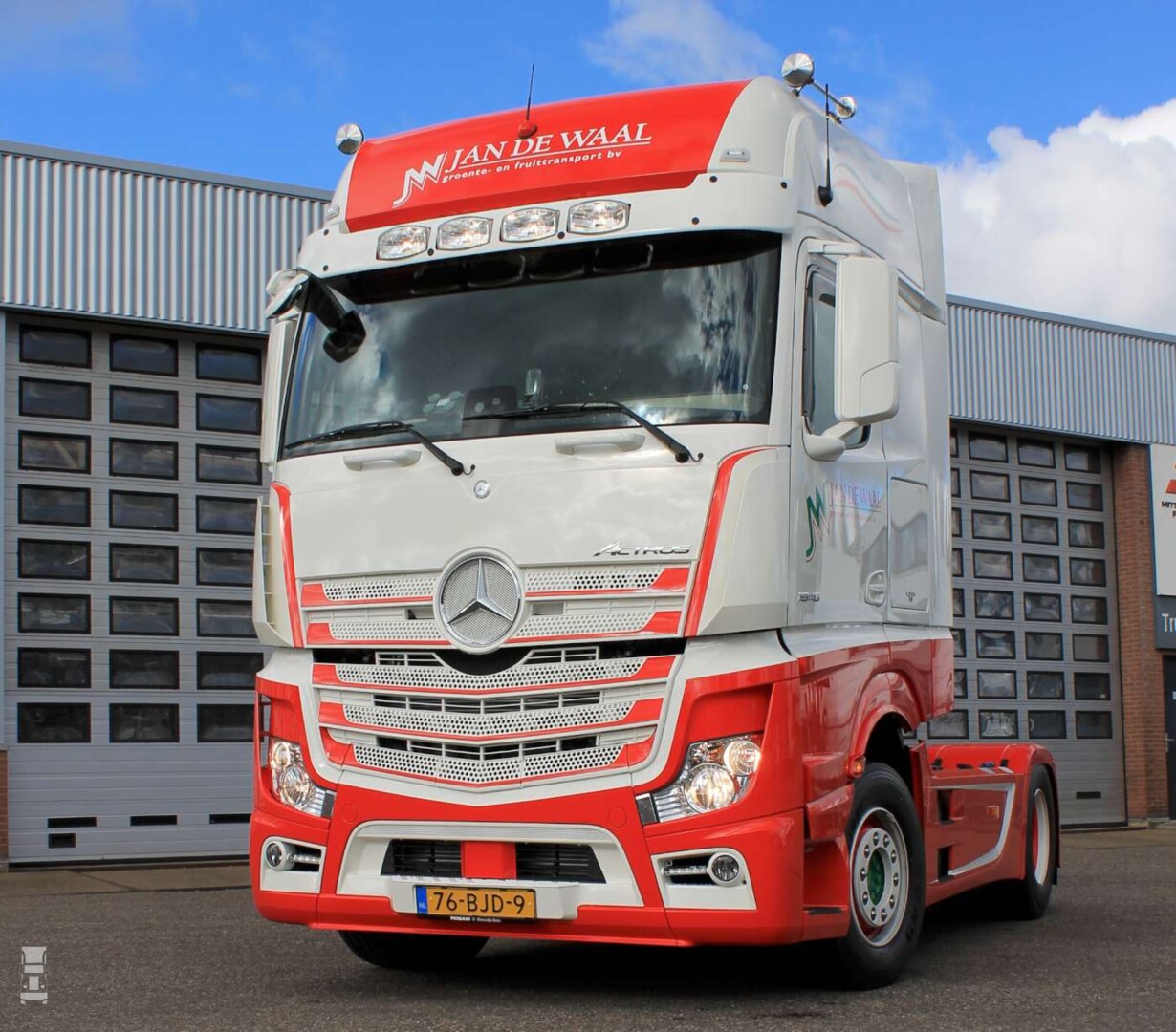 De twee nieuwste Mercedes-Benz aanwinsten zijn net als de andere trucks luxe uitgerust. De Actros 1945 LS trucks zijn voorzien van GigaSpace-cabine, die comfortabel is uitgevoerd met lederen stoelen, standairco en magnetron. Aan de buitenkant is ook gedacht. De uitstraling van de trucks is strak dankzij de zijfender en zijskirts, de luchthoorns op het dak en de vier verstralers in de zonneklep. Het rood-witte spuitwerk, de kleuren van Jan de Waal, maakt de afwerking compleet. Daarnaast zijn de trucks uitgerust met het innovatieve systeem Predictive Powertrain Control (PPC) dat met behulp van de cruisecontrole de versnellingen en snelheid vooraf en volledig afstemt op gps-gegevens en topografische kaarten.