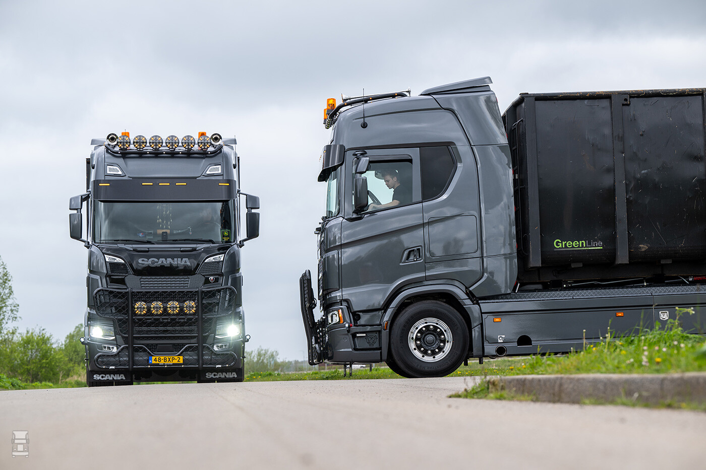 Vader en zoon Mulder hebben ieder hun eigen bedrijf. “Onze handel in restmetalen zit in Nederland en Duitsland. Het metaal rijden we vervolgens naar de exporteur. De voorkeur voor Scania is zowel bij vader als zoon meer dan aanwezig. “Als je een V8 wilt, kom je natuurlijk automatisch bij Scania uit. Onze vorige truck was ook een Scania V8 maar dan met 650pk. Nodig? Niet echt. Mooi? Jazeker! Maar dat geldt wel voor meer dingen. Daarom hebben we het design verder verfijnd met een bullbar en de nodige LED vérstralers. En met zijn 3.700 Nm vanaf 1.000 omwentelingen per minuut trekt deze nieuwe truck nog net iets harder op. Dus, hoe wij ook beladen zijn, we kunnen vlot meekomen in het verkeer.”