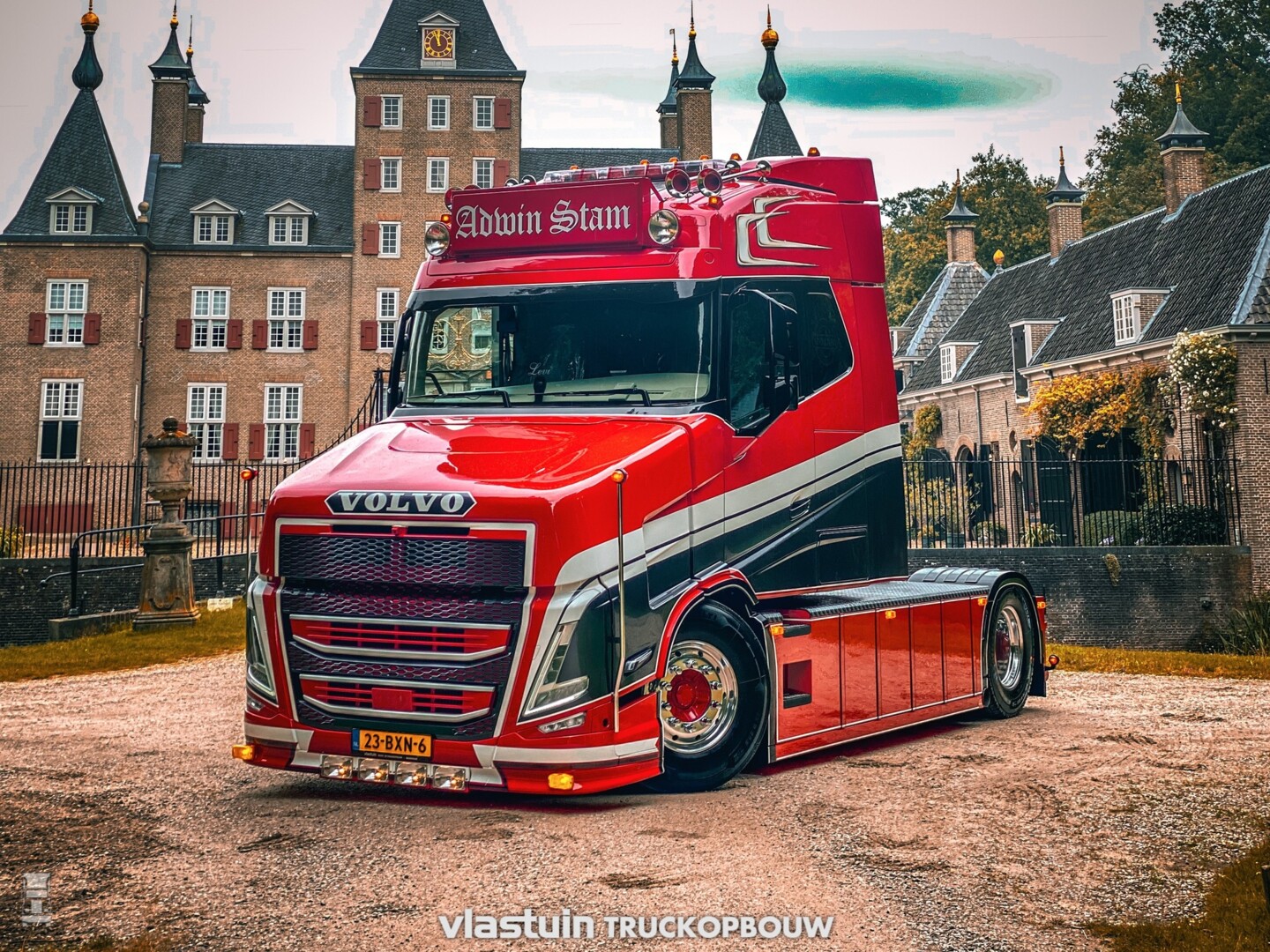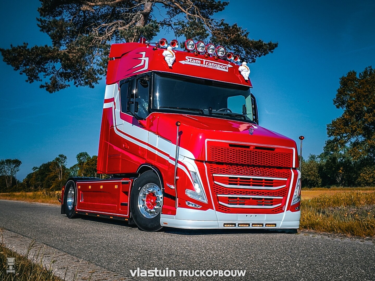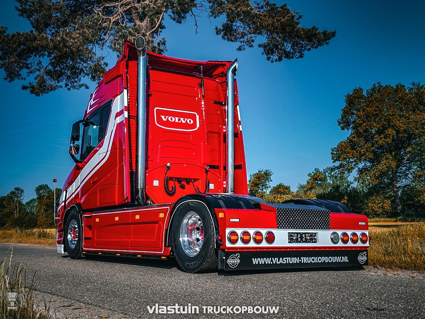 De broers Ralph en Adwin Stam zetten het bedrijf dus voort met trucks in hun eigen huisstijl. De nieuwe Volvo trekkers zien er spectaculair uit en dit zijn de nummers 9- en 10 van dit model die Vlastuin Truckopbouw gebouwd heeft. Het principe is het zelfde als bij de Scania T- modellen van Vlastuin. Je neemt een extra lang trekker chassis, de cabine gaat naar achteren en daarvoor komt een stoere motorkap. Daarbij blijft alle techniek ongewijzigd, inclusief de hele onderpartij met de verplichte Fups en de veiligheid systemen.