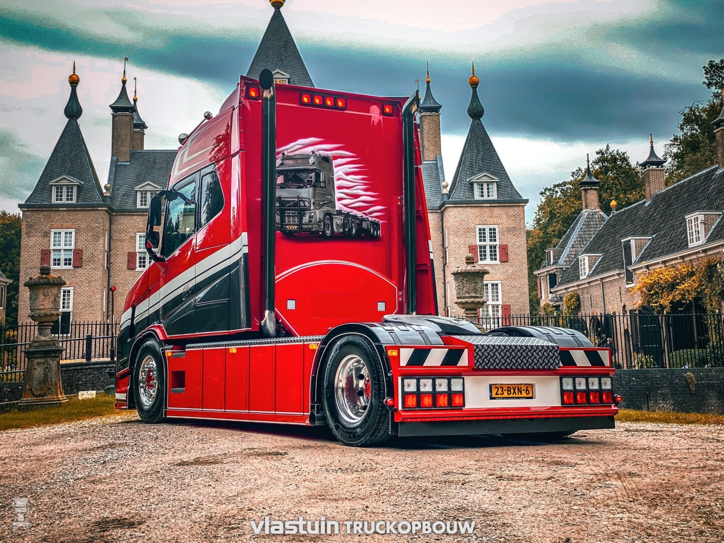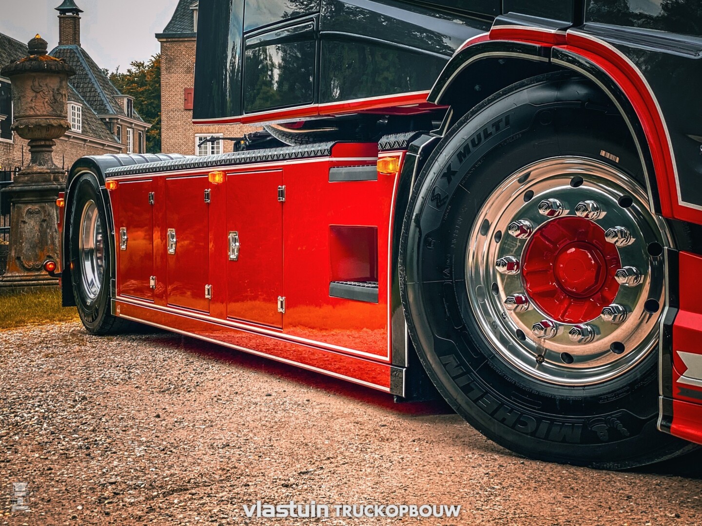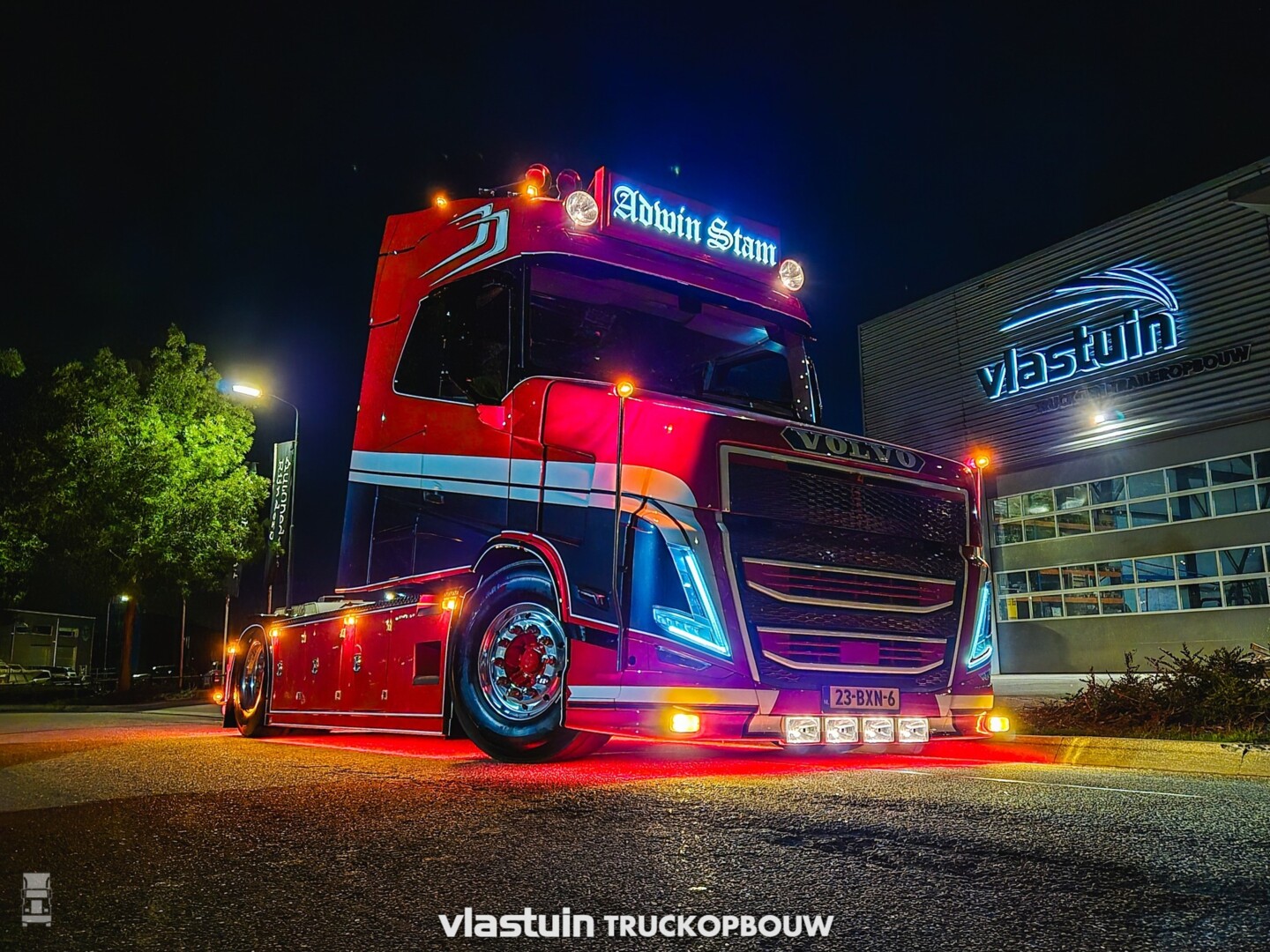 De broers Ralph en Adwin Stam zetten het bedrijf dus voort met trucks in hun eigen huisstijl. De nieuwe Volvo trekkers zien er spectaculair uit en dit zijn de nummers 9- en 10 van dit model die Vlastuin Truckopbouw gebouwd heeft. Het principe is het zelfde als bij de Scania T- modellen van Vlastuin. Je neemt een extra lang trekker chassis, de cabine gaat naar achteren en daarvoor komt een stoere motorkap. Daarbij blijft alle techniek ongewijzigd, inclusief de hele onderpartij met de verplichte Fups en de veiligheid systemen.