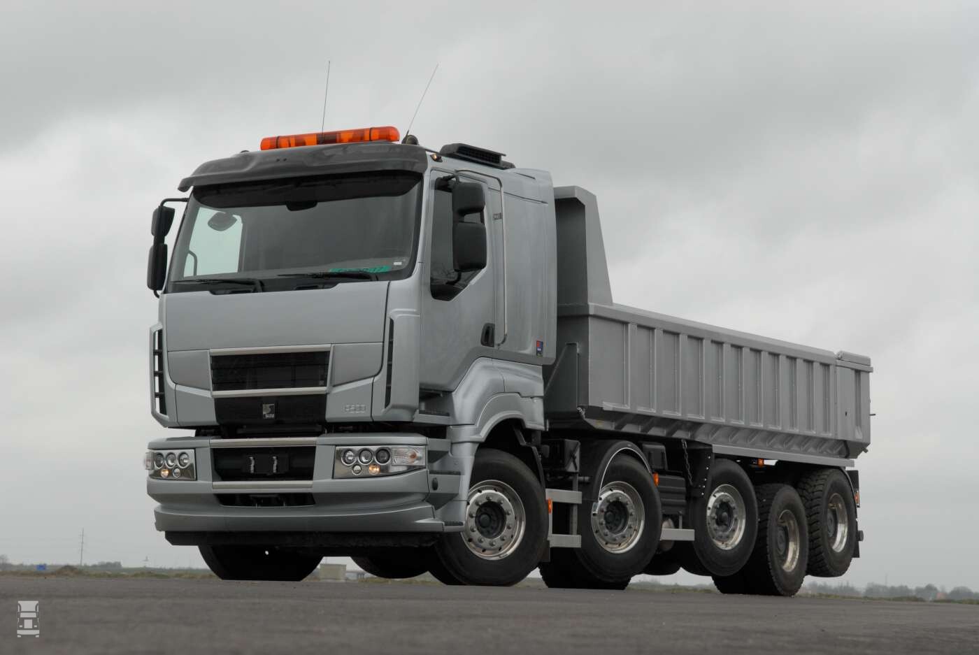 Sisu werkte in die tijd nog met Renault cabines en met Cummins motoren. De kipper die je hier ziet is een 10x4, maar dankzij de uitschakelbare- en liftbare achteras en met de twee middelste assen omhoog kon je daar ook als 4x2 mee rijden. Of als 10x2, of als 8x2, 8x4, 6x2 of als 6x4. Kortom, enorm veel mogelijkheden. In 2008 probeerde ESA Trucks of zo'n Sisu wellicht kansen zou hebben in Nederland, en bij die gelegenheid mocht ik er even mee rijden voor een verhaal. Uiteraard moesten alle mogelijkheden geprobeerd worden, en dat was best interessant. Alleen bleek dat de aangedreven laatste as ook liftbaar was terwijl hij nog stond ingeschakeld. Dan kom je dus nergens, want dan draait die as in het luchtledige.
