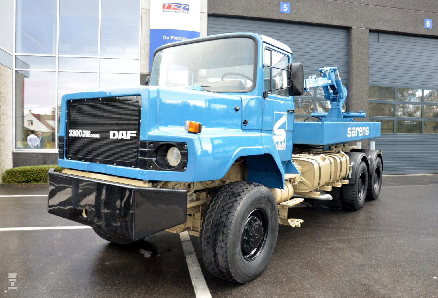 De DAF van Sarens werd voorzien van een ballastbak voor extra tractie. Aanvankelijk reed de auto in Europa, maar later werd hij verscheept naar Mexico waar Sarens ook een vestiging had. Dat duurde tot 2013 toen Sarens zich terug trok uit dat land na de moord op Jan Sarens in Acapulco. De unieke DAF werd terug gehaald naar Belgiƫ, waar hij bij DAF dealer Garage De Plecker-Pauwels een grondige restauratie onderging. Overigens heeft de truck de type aanduiding 3300 in de grille. Wellicht is de originele 2800 motor ooit vervangen door een 3300.