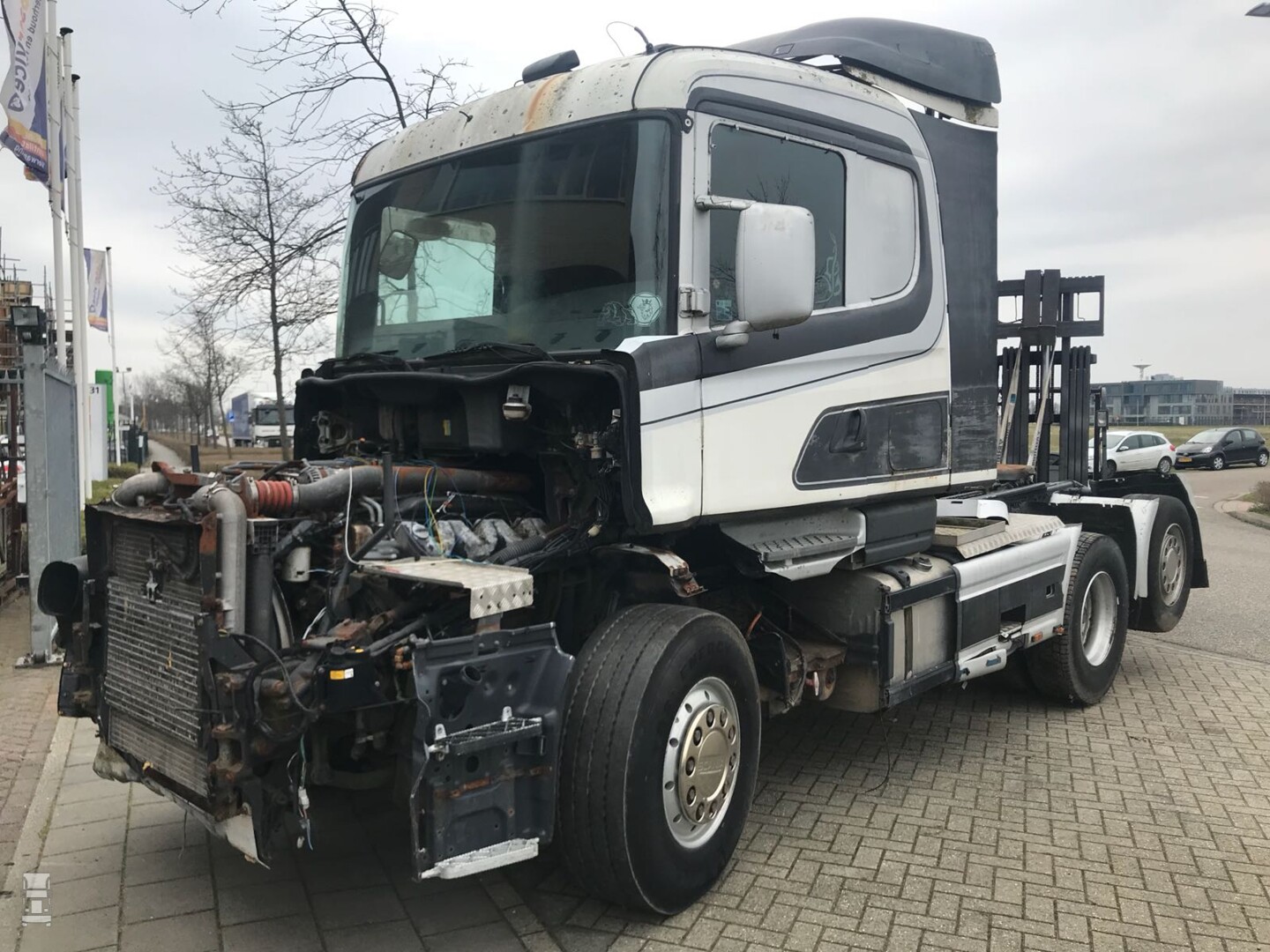 De Scania is weer rijdbaar en toonbaar gemaakt, maar dat ging niet vanzelf. Deze truck, afkomstig uit Noorwegen, was een enkellucht sleepasser met een lage cabine. Een en ander was in slechte staat toen de huidige eigenaar 'm kocht. Het oorspronkelijke bouwjaar is 1998, ten tijde dus van de Euro 2 uitlaatgasnorm.