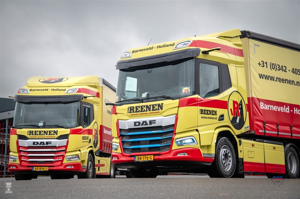 De verschillen tussen de vrachtwagen van toen en de elektrische van nu zijn enorm. Niet alleen het neusje is verdwenen, maar ook de spiegels. Ook het rauwe geluid van een dieselmotor behoort tot het verleden en is vervangen door een zacht gezoem. Twee elektrische DAF trekkers schafte Van Reenen Transport aan. Ze worden ingezet voor groupagewerk.