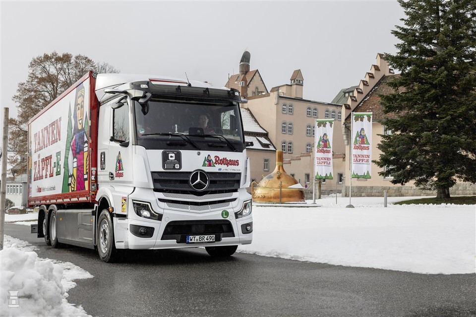 Om te laten zien wat elektrische vrachtwagens allemaal kunnen, besloot brouwerij Rothaus om een lading bier en een kerstboom te bezorgen in Brussel. Het was een rit van 680 kilometer. De lading was bestemd voor een bijzondere klant van Rothaus, die graag een lading Tannenzäpfle bier en een kerstboom uit het Zwarte Woud wilde hebben. De rit werd opgezet als promotiestunt, waarbij een Mercedes-Benz eActros 600 werd ingezet.