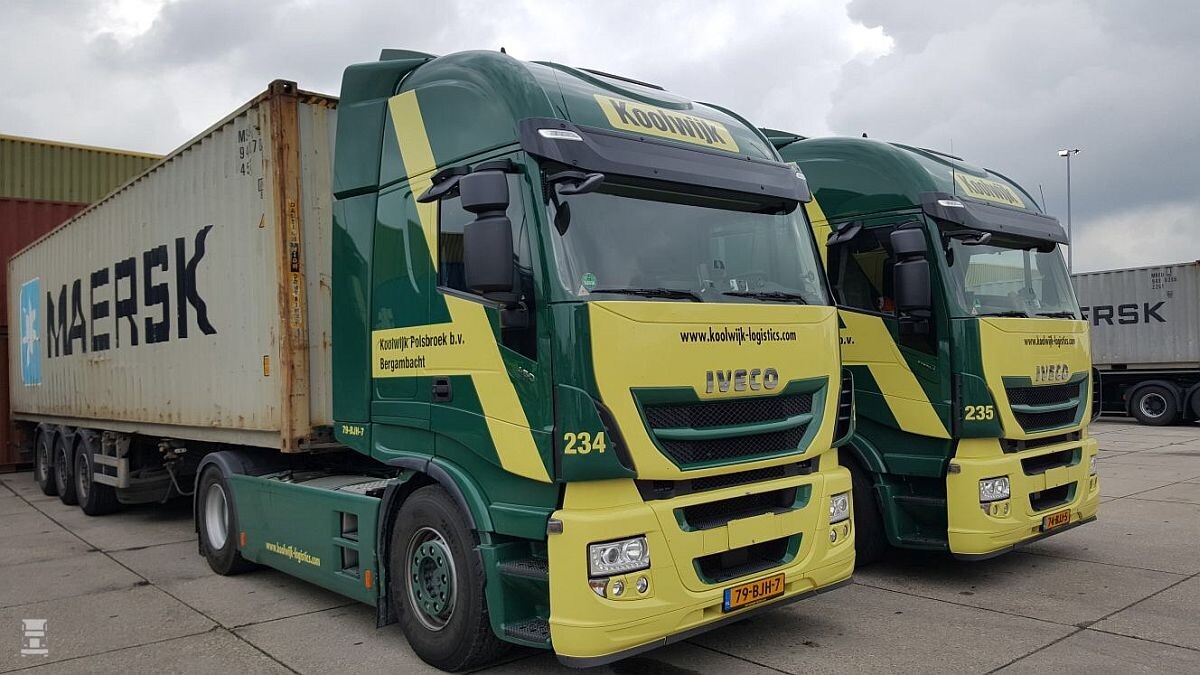 Onlangs heeft Koolwijk uit Bergambacht de eerste drie van vier nieuwe Iveco Stralis Hi-Way trekkers in bedrijf genomen. De trekkers zijn uitgerust met 460pk 11-liter dieselmotor, gekoppeld aan de nieuwe Hi-Tronix volautomatische versnellingsbak. Kwakernaak Bedrijfswagens uit Waddinxveen leverde de nieuwe trekkers af aan Koolwijk.