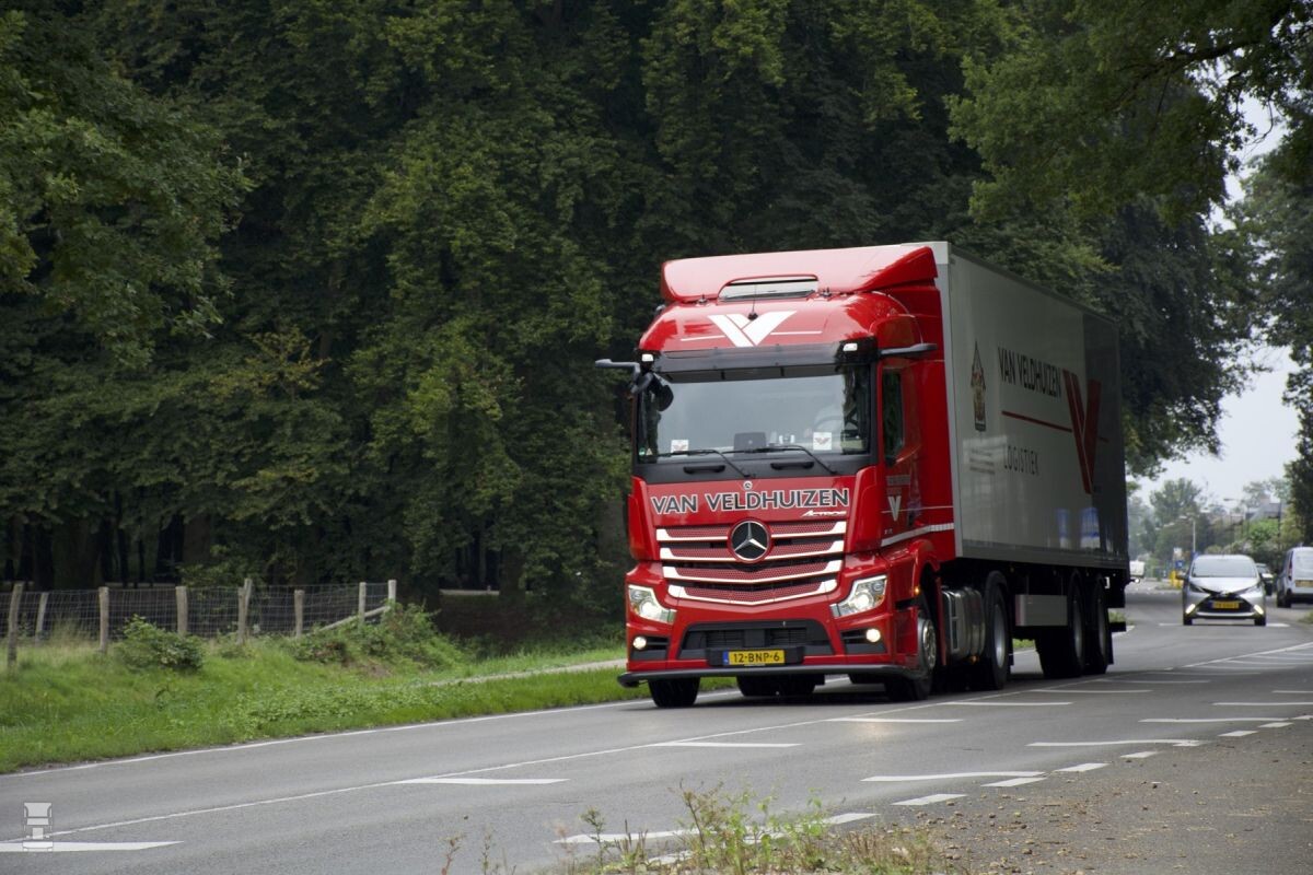 De nieuwe Mercedes-Benz Actros, die onlangs werd uitgeroepen tot International Truck of the Year 2020, wordt geroemd om zijn innovatieve karakter dat volgens Mercedes bijdraagt aan een laag brandstofverbruik en CO2-uitstoot. Dit wordt mede mogelijke gemaakt dankzij de nieuwe anticiperende cruise-control Predictive Powertrain Control (PPC), die nu ook bochten en rotondes herkent. De MirrorCam zorgt niet alleen voor goed zicht op de hele combinatie, maar zorgt met een verbeterde aerodynamica ook voor een aantoonbaar lager brandstofverbruik. Deze argumenten speelden voor mede-eigenaar Berth van Veldhuizen zeker een rol in de keuze voor Mercedes-Benz tijdens de oriëntatiefase: “Cijfermatig heeft de Actros ons opnieuw kunnen overtuigen. Bovendien hebben we door weer voor Mercedes te kiezen, een mooie uniforme uitstraling in het wagenpark.” Met de in gebruikname van vier nieuwe Actros 1842 LS trekkers groeide het aantal Mercedes-trucks in het wagenpark tot boven de veertig.