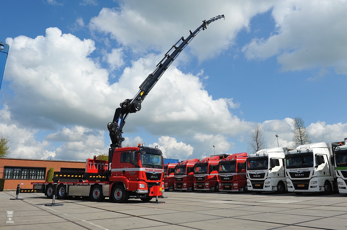 Op zaterdagochtend staat een lange rij van schoongewassen MAN-trucks opgesteld bij Verwaal Transport in Stolwijk. Recentelijk zijn hier twee nieuwe TGX-modellen van de nieuwste generatie aan toegevoegd, uitgevoerd in de nieuwe huisstijl van dit familiebedrijf. Verder nam Verwaal twee autokranen op in de vloot waarvan er een is uitgerust met een 95 tonmeter kraan en de andere met een kraan van 40 tonmeter. Het exemplaar met de 95 tonmeter kraan heeft een 8x2-6 chassis en is dus bijzonder wendbaar. De MAN met de 40 tonmeter kraan heeft een 8x4 triple-chassis. De levering onderstreept de veelzijdigheid van het aanbod dat MAN te bieden heeft.