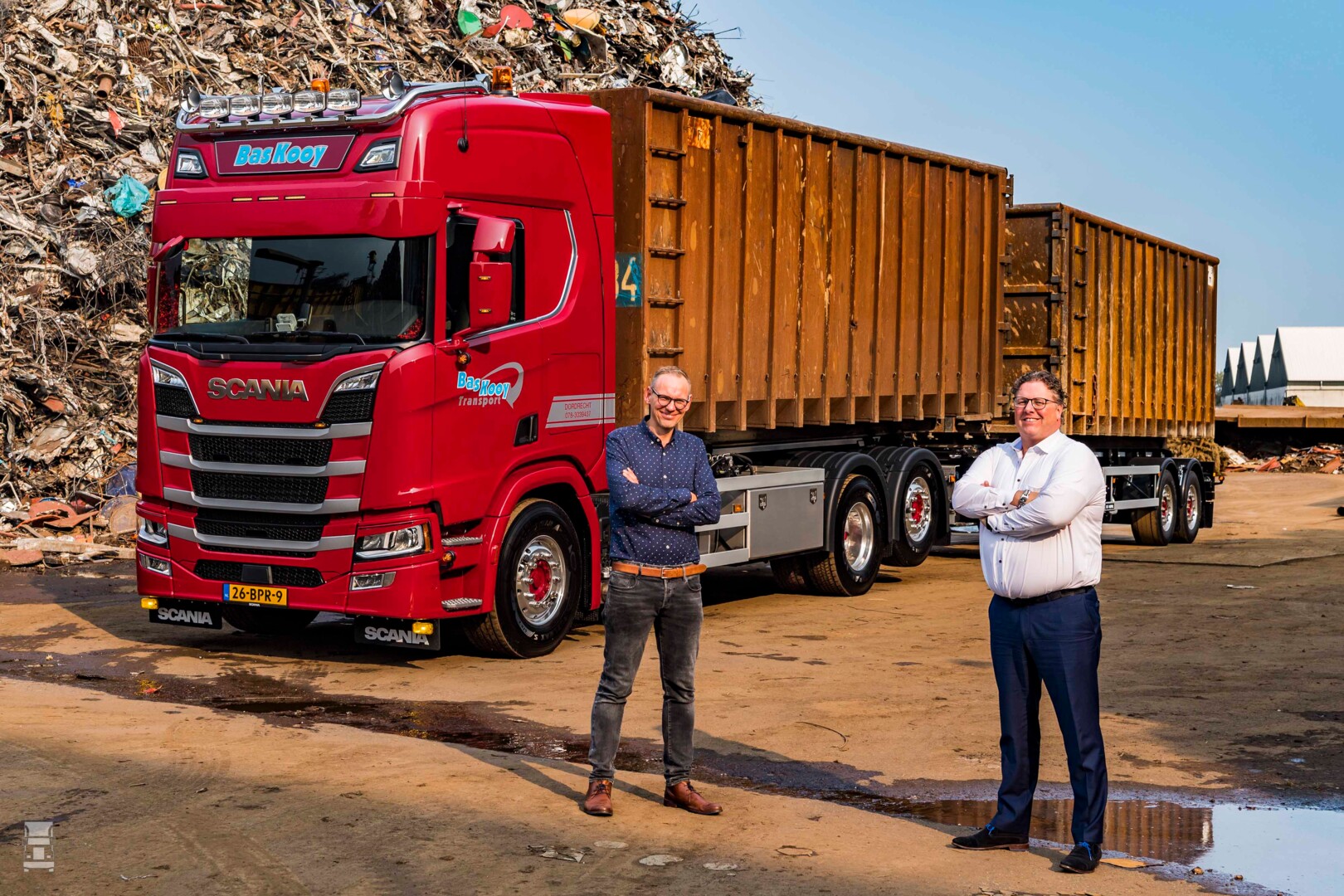 De vloot van Bas Kooij bestaat voor 99 procent uit Scania’s. “Onze 34 voertuigen rijden voor het leeuwendeel voor Jansen Recycling. “Dat is één van de drie grootste recyclelaars in Nederland van metalen, zowel ferro als non ferro. Daar verwerken ze zo’n 500.000 ton metalen per jaar en een belangrijk deel daarvan rijden wij,” vertelt Roodenburg. Dat trekt een wissel op de voertuigen. “Trucks in de gebruikte metalen kennen een zware inzet. Bij ons doet een truck gemiddeld zo’n 100.000 kilometer per jaar. Maar na een jaar of vier ruilen we ze in. Dat voorkomt hoge kosten. Bij ons is niet zozeer het volume als wel het gewicht doorslaggevend. Die 50 ton komen we dagelijks tegen. We proberen de trucks verder zo licht mogelijk te houden met o.a. lichtmetalen velgen.”