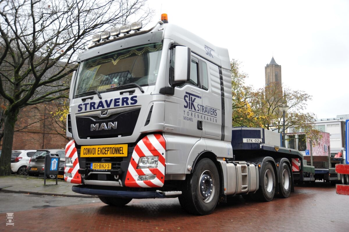 STK Stravers Torenkranen uit Veghel verhuurt ruim 125 torenkranen die voor de bouw worden ingezet. Het bedrijf houdt alle logistiek in eigen hand en dat vergt een intensieve planning voor de montage en de demontage. Eigenaar Berry Stravers vertrouwt voor het transport op trucks van MAN. Afgelopen jaar werden er vier nieuwe MAN-trekkers aangeschaft. Twee 460 pk sterke TGS 4x2 trekkers en twee unieke zwaar transport TGX 6x4 trekkers met de 640 pk sterke D38 krachtbron.