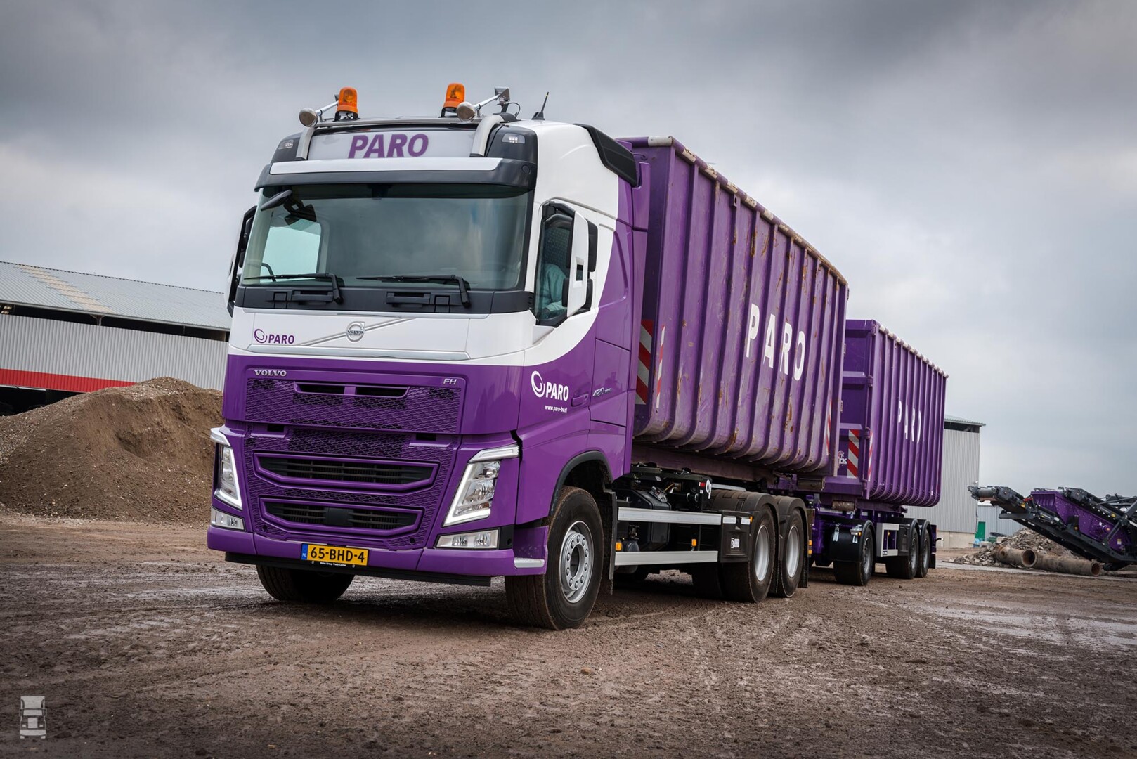 Het opvallend gespoten paarse wagenpark van PARO staat geheel in dienst van het inzamelen van bouwgerelateerd afval, het distribueren van herbruikbare deelstromen naar eindverwerkers en het leveren van secundaire bouwgrondstoffen. Voorbeelden zijn hout, ijzer, papier, plastics en beton- en menggranulaten in diverse gradaties. “De kippers rijden in de regio groot-Amsterdam, de combinaties worden landelijk ingezet”, zo beschrijft bedrijfsleider Jan Koetsier het werkgebied van PARO.