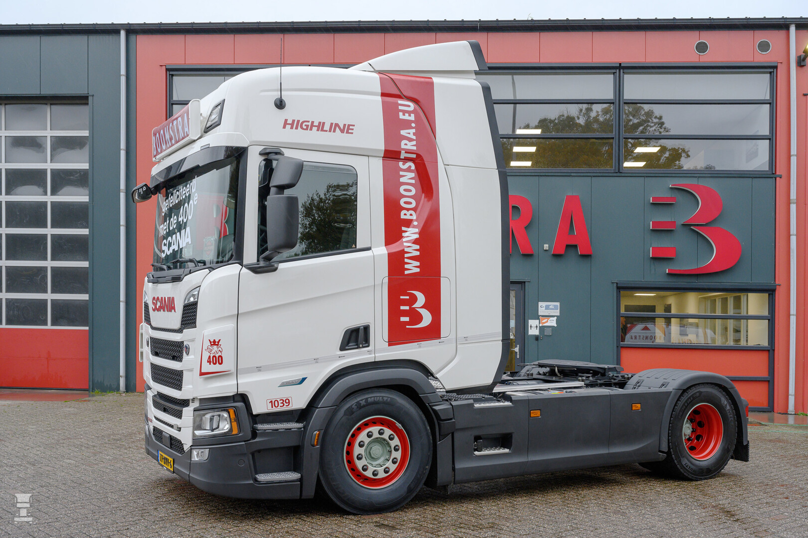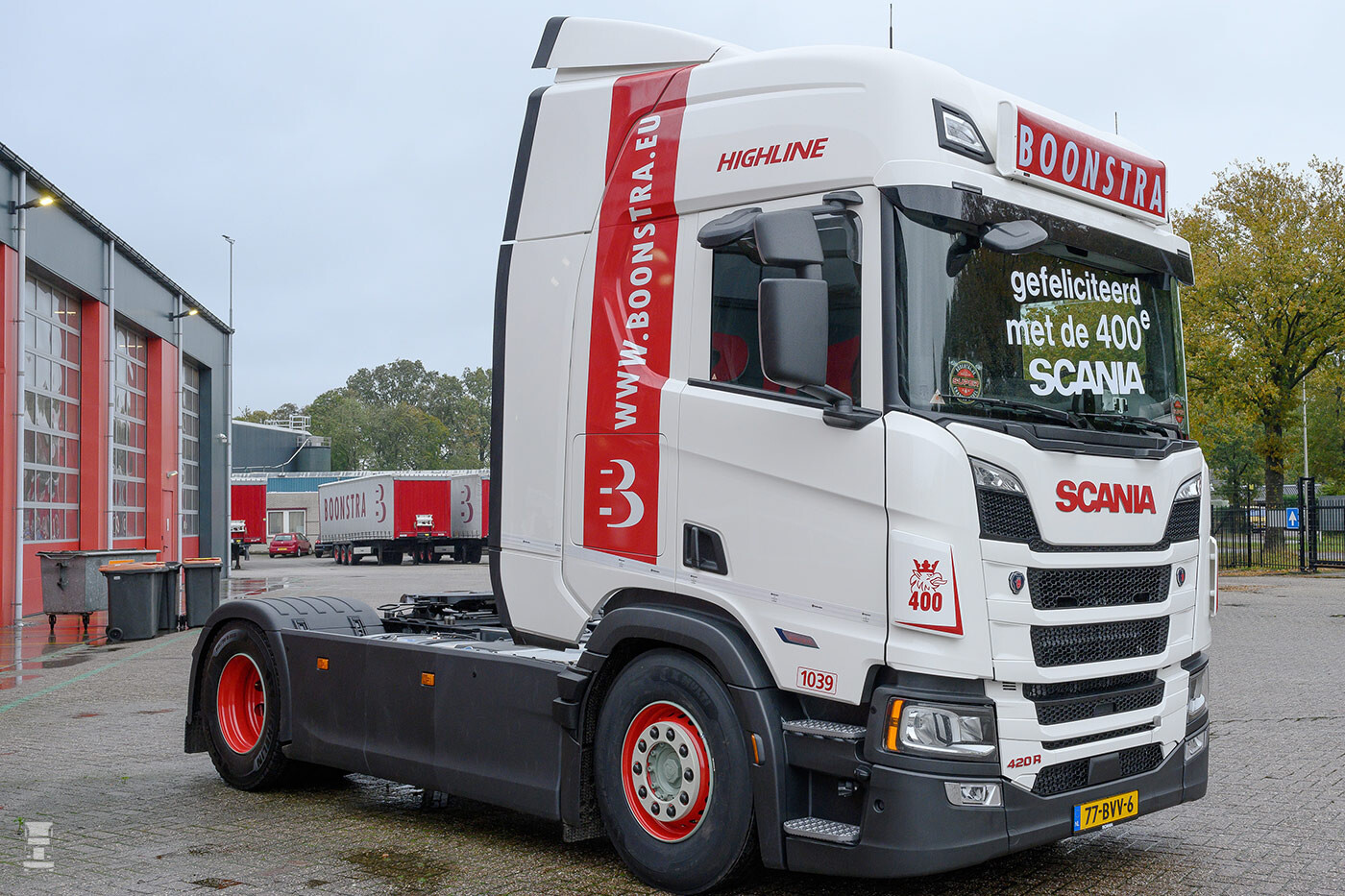 De basis van Boonstra Transport, gevestigd in Haulerwijk, werd in 1928 gelegd door Feike Boonstra. Inmiddels is het no-nonsense familiebedrijf in handen van de derde generatie en de volgende staat al te popelen om het over te nemen. Begin jaren vijftig werden de eerste Scania vrachtwagens in gebruik genomen en dat nu de vierhonderdste verwelkomd wordt, is volgens Boonstra niet toevallig. “In aanschaf is het niet het goedkoopste merk, maar dankzij het brandstofverbruik is de TCO onderaan de streep beter dan andere merken in onze vloot.”