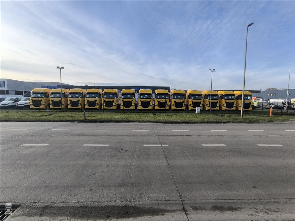 Masterbulk uit het Belgische Gent specialiseert zich in het transporteren van bulk- en tankcontainers. Dit gebeurt zowel per schip als per vrachtwagen. Voor dat laatste heeft Masterbulk een flinke order geplaatst bij Iveco. Komende tijd worden maar liefst vijftien nieuwe S-Way trekkers geleverd. De gele trekkers staan nu nog bij de dealer, waar ze worden voorzien van de bedrijfsnaam en klaargemaakt worden voor aflevering.