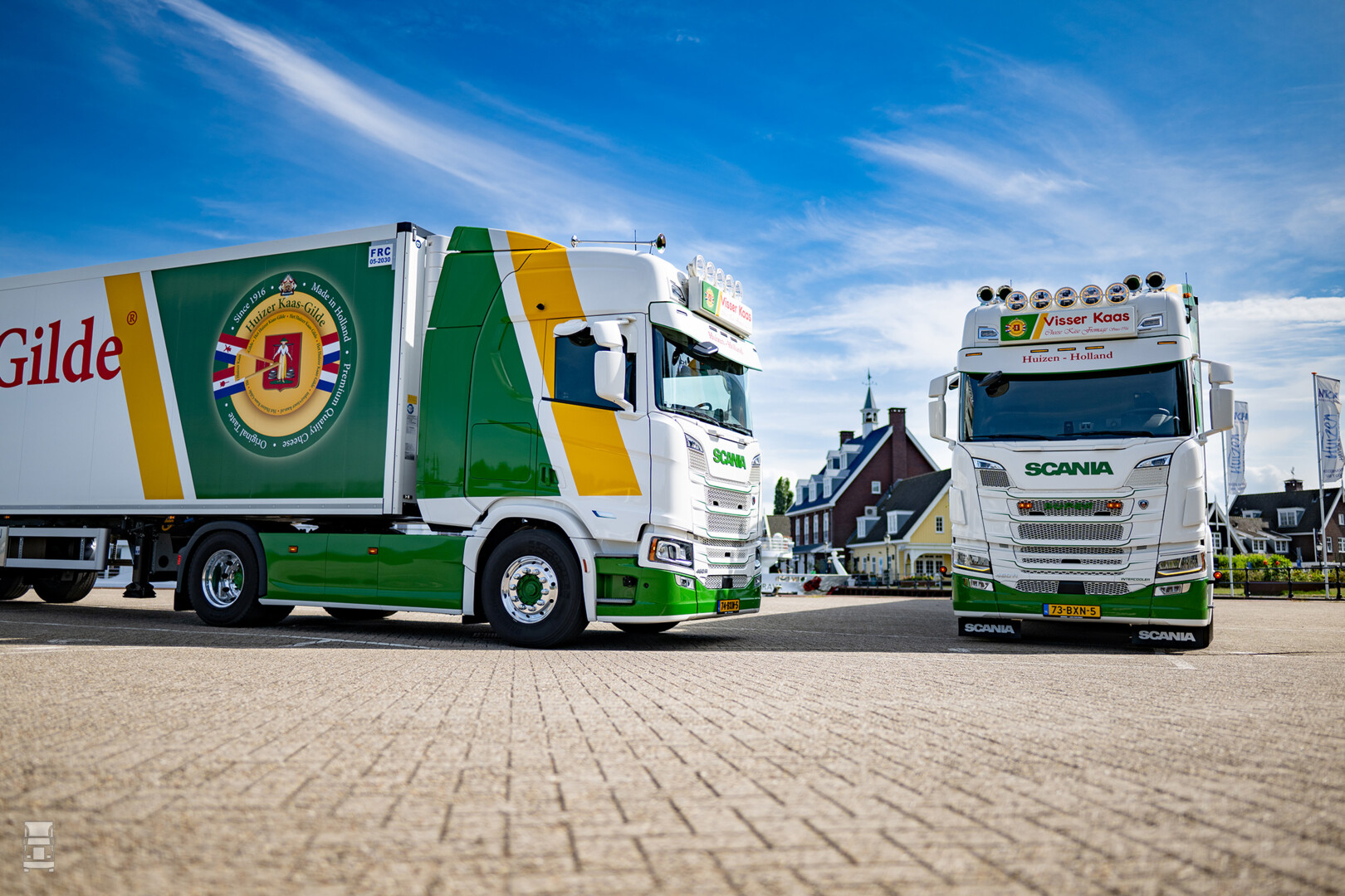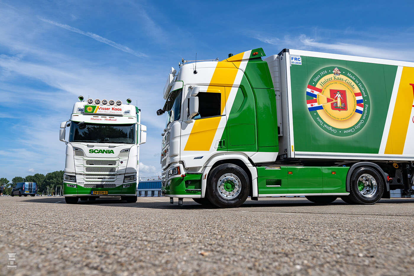 Met de twee nieuwe auto’s bestaat het wagenpark van Visser weer helemaal uit Scania’s. “Afgezien van een uitstapje, heeft ons bedrijf altijd met dit merk gereden. De verstandhouding met de dealer in Nijkerk is goed. Onze trucks doen zo’n 120.000 kilometer per jaar. Daarom hebben we zowel voor de trekkers als de twee nieuwe trailers een onderhoudscontract afgesloten. Dan weten we waar we aan toe zijn. Want in mijn optiek moet iedereen doen waar hij het meeste kaas van gegeten heeft. Als de Scaniadealer zijn werk goed doet, kunnen wij ook optimaal werken.”