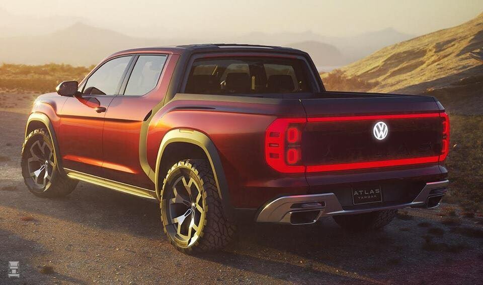 De Atlas SUV wordt gebouwd in Tennesee en is leverbaar met vier- en zes-cilinder motoren tot 284 pk, in combinatie met een achttraps automaat. Met die automaat is niks mis maar als VW serieus aan de bak wil met de pickup dan zal een V8 niet mogen ontbreken in het programma.