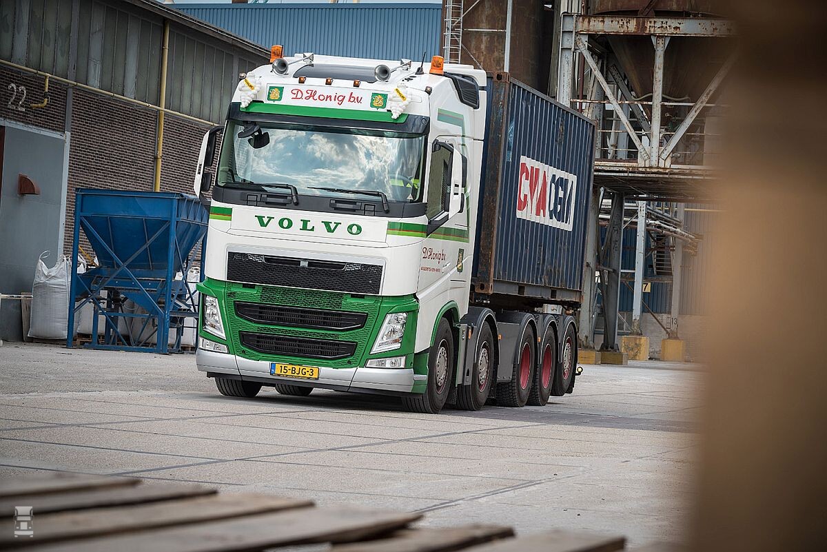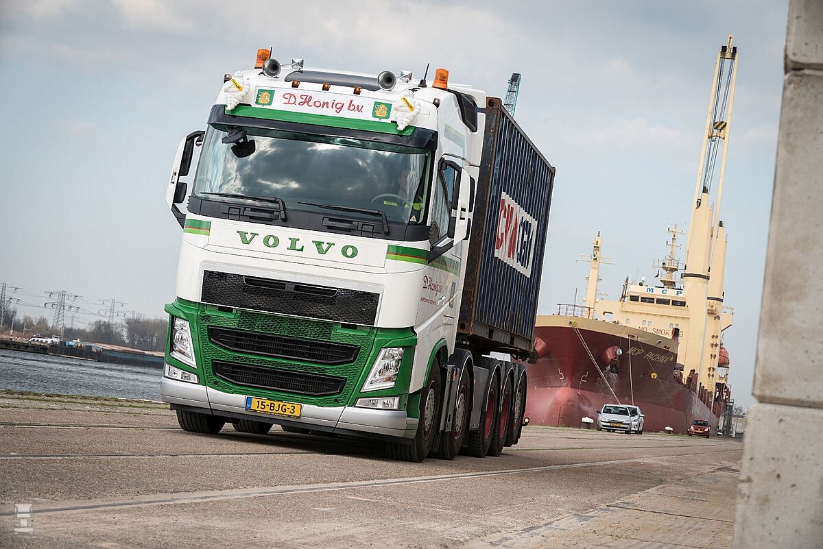 Chauffeur John Honig rijdt voornamelijk regionale kilometers met zeecontainers zand en andere mineralen. Voor deze zware vrachten heeft hij al jaren een Volvo-truck in gebruik waarvan de vijfde as is bijgeplaatst door Terberg Techniek. De Euro 6 norm noodzaakte Honig te investeren in een nieuwe truck. Daarbij kon hij direct profiteren van twee recentelijk geïntroduceerde concepten van Volvo: het 10x4 chassis af fabriek en volledige luchtvering.