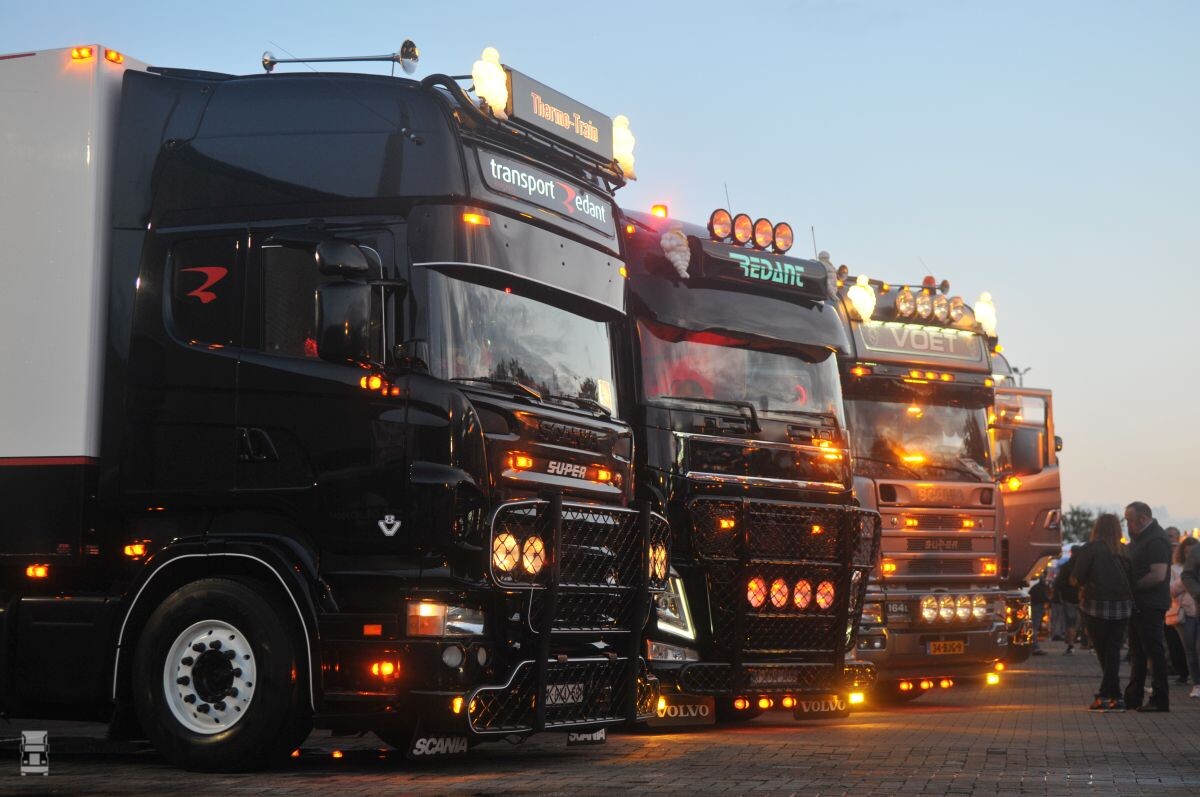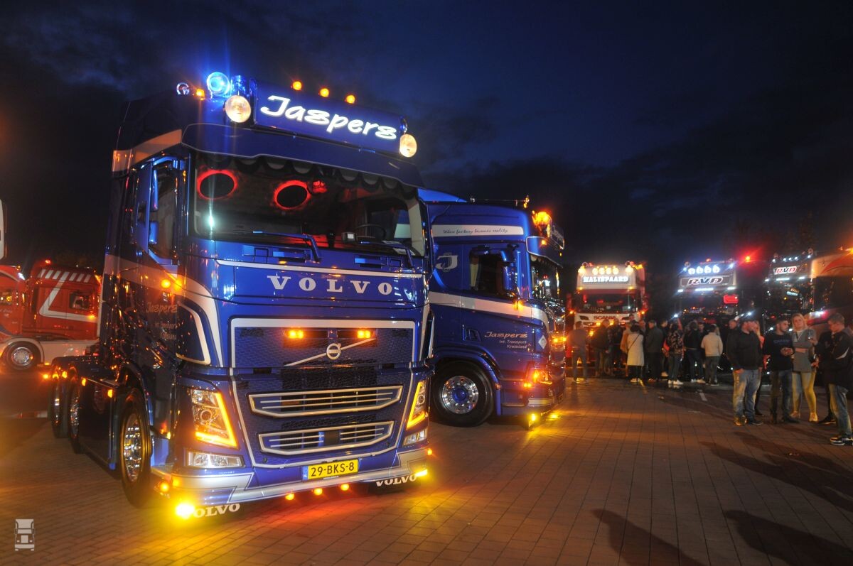 In de middag viel er een enkele bui, mede waardoor het nog niet zo snel op gang kwam met de bezoekers. Maar naarmate de zon erdoor kwam en die op zijn beurt de dag langzaam maar zeker voor gezien hield, werd het drukker en drukker. Met de lampjes eenmaal ontstoken was het bij invallende duisternis een pracht van een lichtshow en liepen vele bezoekers schouder aan schouder tussen de glimmende trucks door. Of er wederom 5.000 bezoekers zijn geweest weten we in dit stadium nog niet, maar vast staat dat men gisteren hard op weg was in die richting, en dat er 300 trucks binnen waren, ook uit Nederland, Frankrijk en Denemarken. Bezoekers hebben gratis toegang, maar betalen wat meer voor eten en drinken. De winst komt ten goede aan een goed doel.