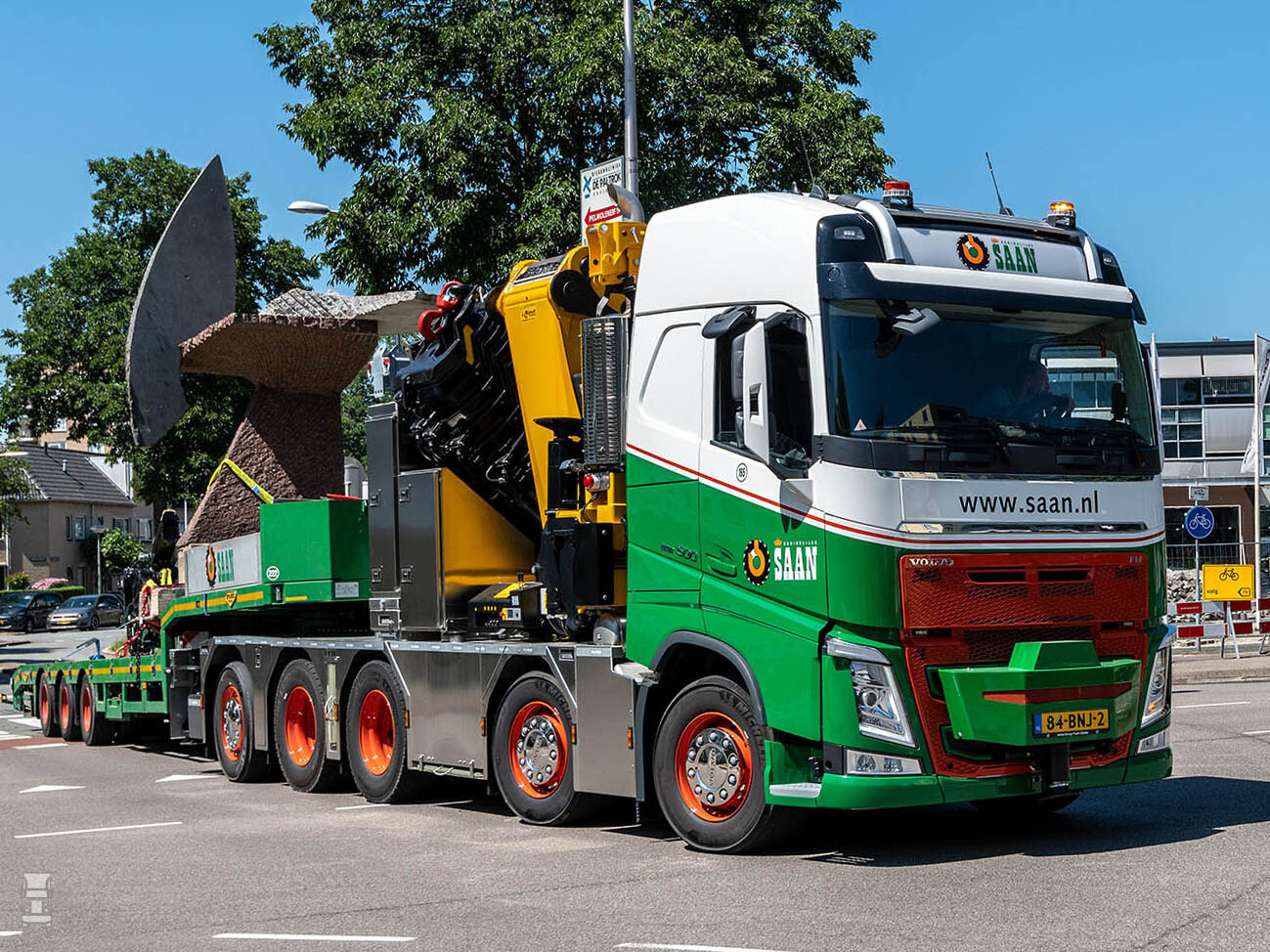 Koninklijke Saan heeft een Volvo FH 500 10x4-bakwagen/trekker voorzien van een 165 tonmeter Palfinger-autolaadkraan aan de vloot toegevoegd. Bij de configuratie is maatwerk geleverd door de optimale verhouding te zoeken tussen de hijscapaciteit van de autolaadkraan, de gewenste lengte van zowel de kraan als het chassis en het GVW. De levering kwam tot stand in samenwerking met Volvo Group Truck Center Amsterdam en Volvo Trucks Nederland.