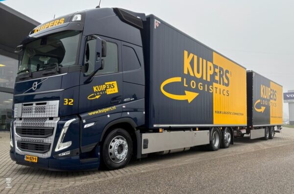 het is de eerste combi in de eigen kleuren van Kuipers Logistics. De vrachtwagen zal speciaal worden ingezet op een lijndienst tussen Midden-Italië en Nederland. Om de specifieke eisen van dit transport te kunnen waarborgen, heeft Kuipers Logistics gekozen voor de uitvoering met het Talfix-systeem aan de binnenkant, dat geschikt is voor hangend vervoer. Verder is de combinatie onder anderen uitgerust met twee laadkleppen, een doorlaadmogelijkheid en een geïsoleerd dak. Met een laadcapaciteit van maar liefst 115 kuub biedt de nieuwe Volvo FH 460 combi volop ruimte voor het transport van goederen.