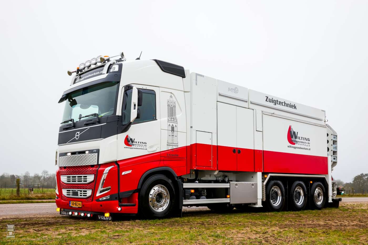 Voor het optimaliseren van de prestaties van de nieuwe grondzuigmachine, werd er veel aandacht besteed aan de werkervaring van de machinist. De opbouw, verzorgd door MTS, bestaat onder andere uit dubbele ventilatoren, een RVS-deksel en container, een lange arm met draaikop, rondomverlichting en geavanceerde detectiesystemen. Albin Droogsma van Droogsma Grondzuigmachines zegt: “De manier waarop Wilting onze sector benadert, is uitzonderlijk. Naast het integreren van de nieuwste innovaties om de werkzaamheden zo efficiënt mogelijk uit te voeren, is er ook aandacht besteed aan het werkplezier van de machinist. Het was een groot voorrecht voor ons om samen met het team van Van Dijk Trucks deze machine te ontwikkelen, het eindresultaat is echt indrukwekkend.”