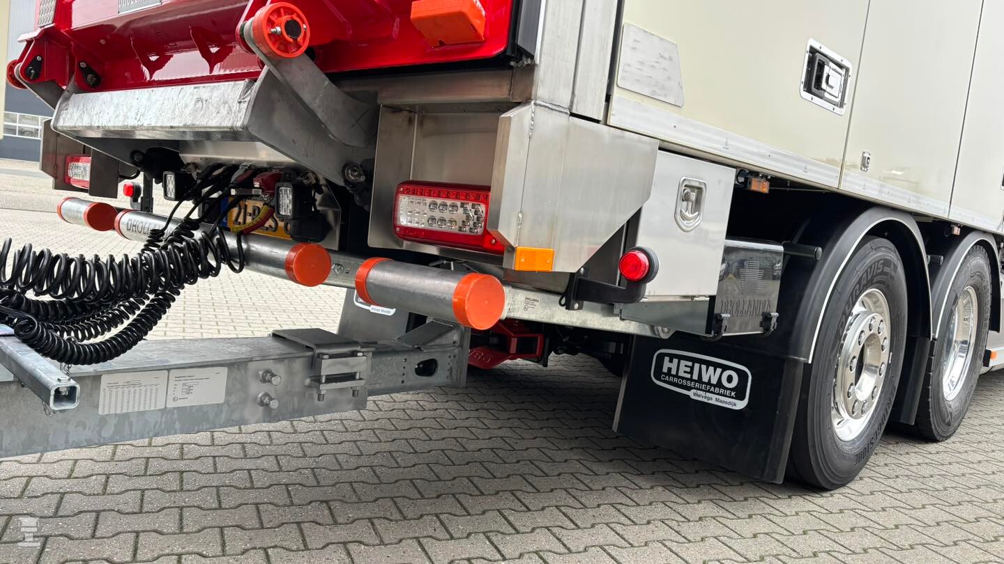 De 6x2 motorwagen staat voor een drie- assige HTF middenas- aanhangwagen met een naloop gestuurde derde as. De combinatie is voorzien van Finse NTM laadbakken die aan beide kanten open kunnen. Heiwo is importeur voor NTM in Nederland, en verzorgde de opbouw van de laadbakken. De motorwagen heeft een inwendige hoogte van 272 cm, de aanhangwagen heeft een hoogte van 286 cm. Beide opbouwen zijn voorzien van een D'hollandia laadklep met topklep.