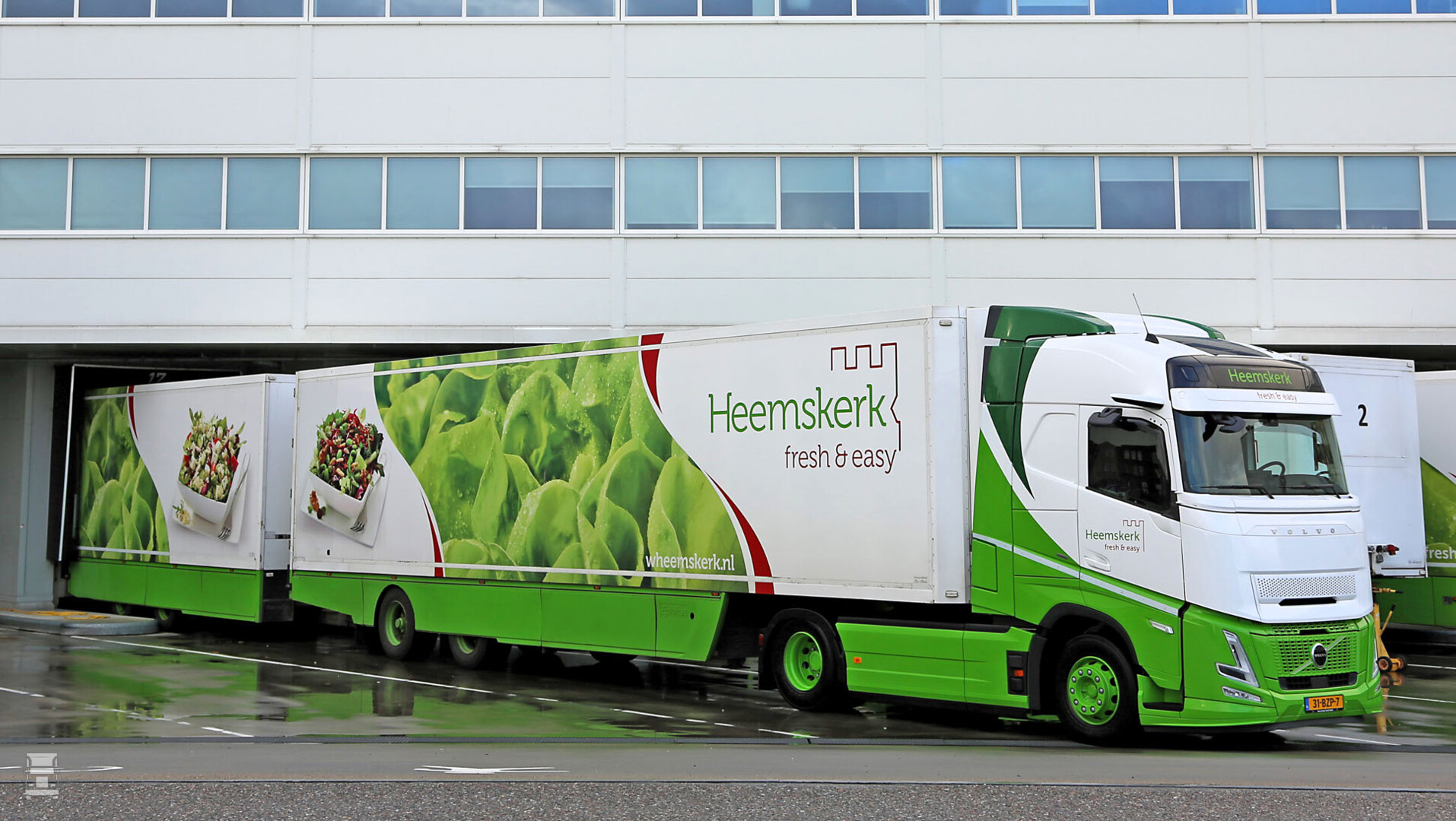 Heemskerk fresh & easy uit Rijnsburg levert dagelijks 500.000 verse producten aan klanten in binnen- en buitenland. Dat doet Heemskerk met een vloot van 35 trucks, waaronder nu twee Volvo FH Aero 460 4x2-trekkers. Met de keuze voor de Volvo FH Aero Globetrotters zet Heemskerk fresh & easy in op verdere brandstofbesparing. “Zuinigheid is voor ons een belangrijk criterium”, zegt Nico Noort, wagenparkbeheerder bij Heemskerk fresy & easy. “Deze trucks rijden tussen de 125.0000 en 145.000 kilometer per jaar en met ons volledige wagenpark rijden we jaarlijks tot wel 4 miljoen kilometer. Iedere procent brandstof die we kunnen besparen telt mee. De Volvo FH Aero heeft een aerodynamisch design en is uitgerust met de zuinige Turbo Compound-motor. We hebben al trucks met de Turbo Compound-motor in de vloot en we zien dat voertuigen met deze motor tot wel 8 procent zuiniger zijn. Bij deze nieuwe Volvo FH Aero-trekkers komt daar het voordeel van de extra aerodynamica nog eens bij. Voor nog meer brandstofefficiency en betere aerodynamica zijn de trucks voorzien van Fuel Hero Pro+ pakket met brandstofbesparende functies en een Airflow-pakket met dakspoilers en zijfenders.”