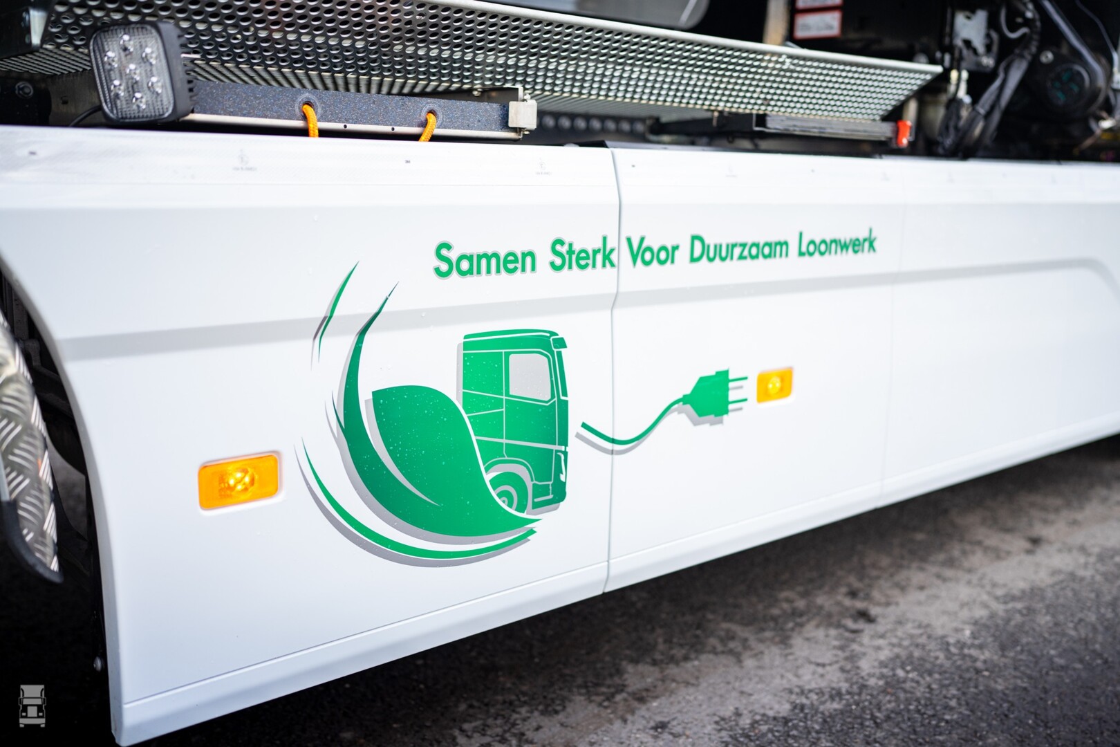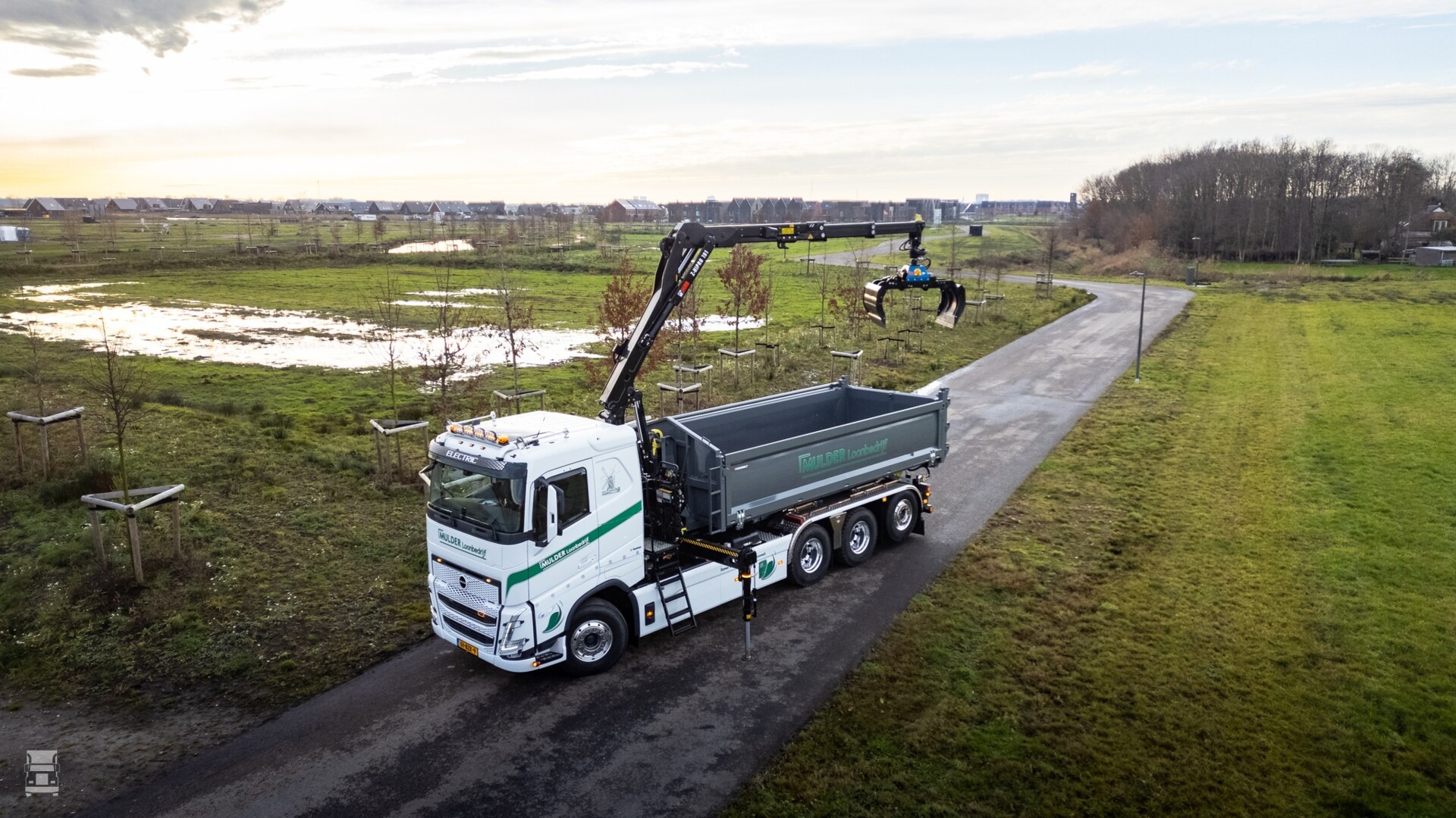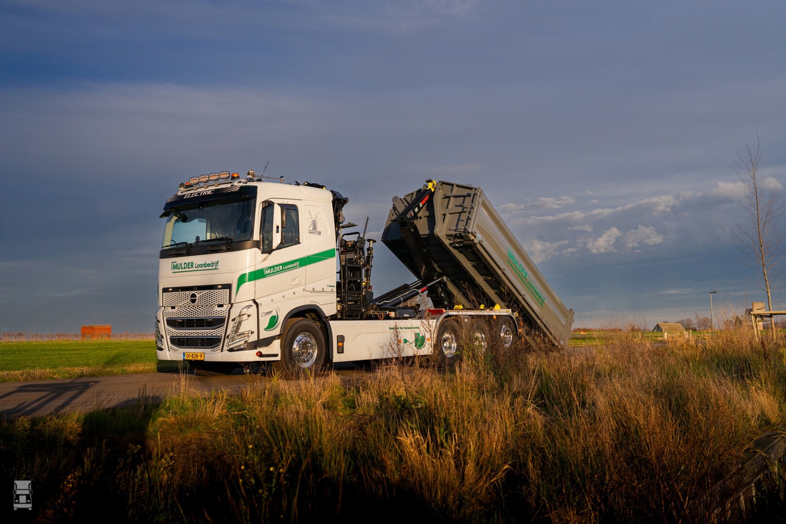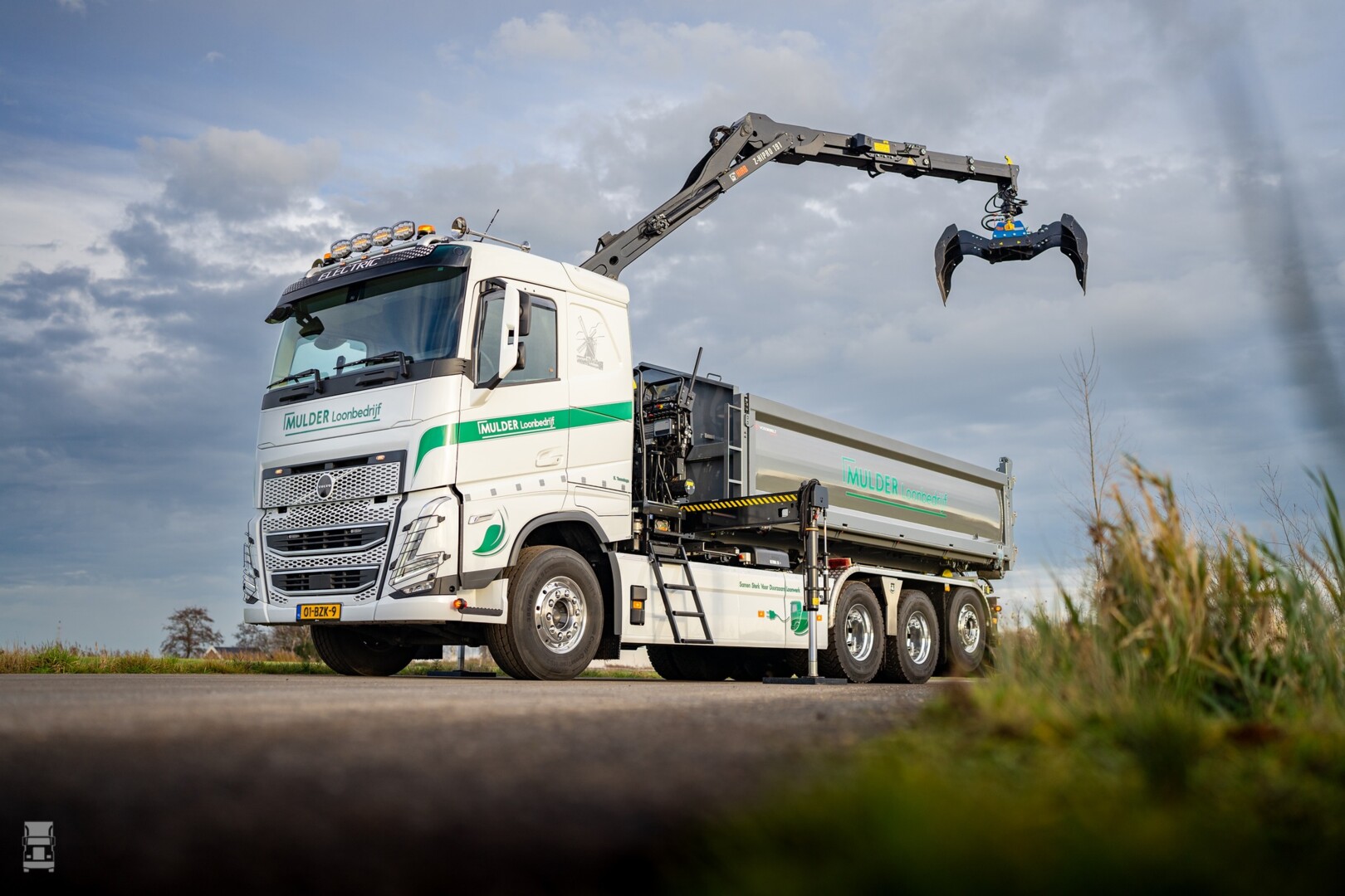 De, door Nijwa Volvo Trucks geleverde Volvo is een 8x4 Triple. De truck werd in samenwerking met Container Bouw Noord BV en Vossebelt Trusteel opgebouwd en vervolgens door Homan Reclame bestickerd. Bijzonder is dat de afzetbak voorzien is van een hydraulisch openende zijkant aan de linkerkant, hoewel zijdelings kippen niet mogelijk is met de haakarm. Mulder koos voor deze optie omdat hiermee de laadbak eenvoudig geladen kan worden met een heftruck als dat nodig is. Hierdoor ontstaat er een multifunctioneel voertuig. Om het eigen gewicht van de elektrische truck te beperken werd er gekozen voor een set glanzende Alcoa wielen op alle vier assen. Het resultaat mag zeker gezien worden. Foto's: HJW Fotografie&Video.