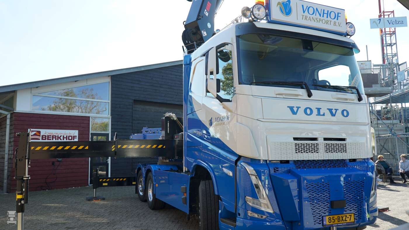 De Volvo FH is ook voorzien van een standaard trekhaak. Johan: ,,Het is bij de klanten soms zo krap dat we er niet met de oplegger kunnen komen. We rijden met veel bestelwagens met aanhanger en de Volvo kan zo’n aanhanger nu ook zo aanpikken.” Van de Weijer Carrosseriebouw is bijna Johans buurman, dus was het vanzelfsprekend dat zij de opbouw voor hun rekening zouden nemen. Daar komt nog bij dat zijn HIAB dealer zijn. De keuze viel op de zware Hiab autolaadkraan met frontstempel, iets wat voor Vonhof een must is; “Bijna 80% van ons werk hijsen we vóór de cabine. We kunnen hiermee op twintig, dertig meter nog een lift wegpakken.” De montage van de voor- afstempeling is tevens de reden dat er niet gekozen is voor de Volvo FH Aero. Aan de Aero neus kan namelijk geen front afstempeling bevestigd worden.