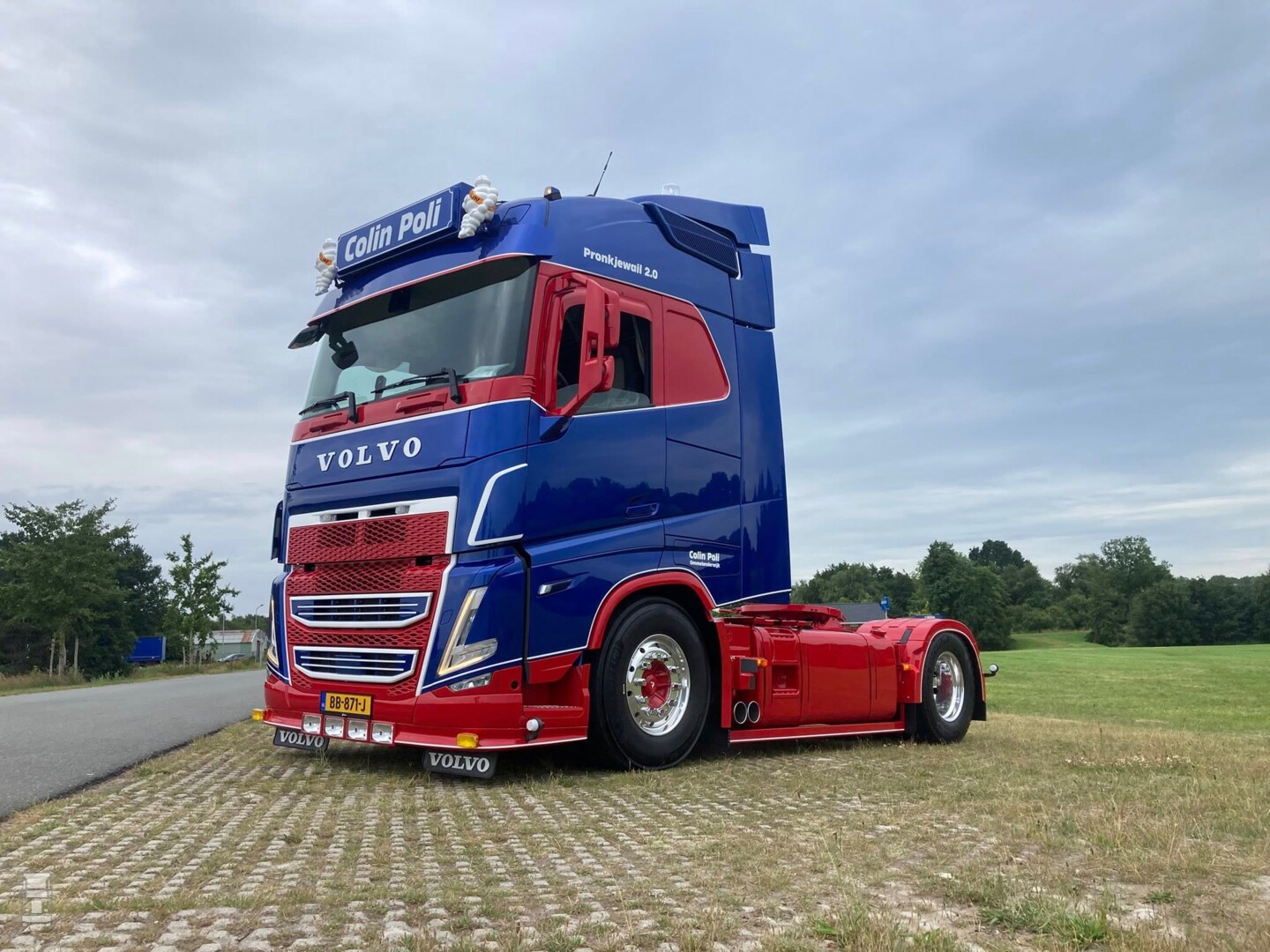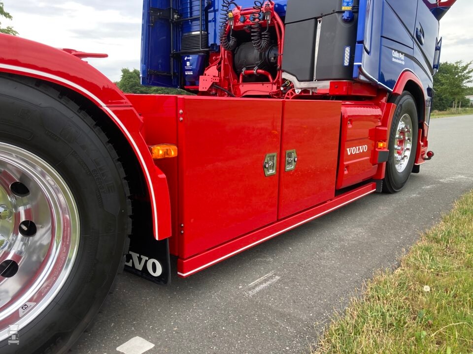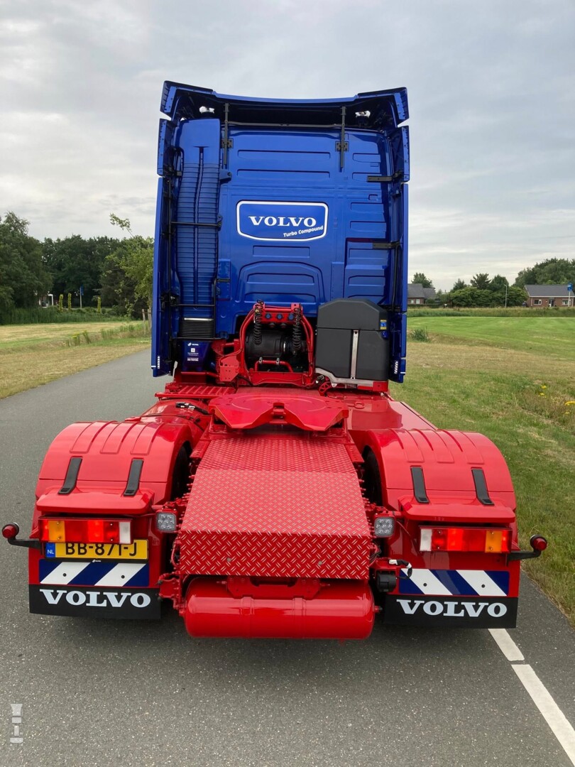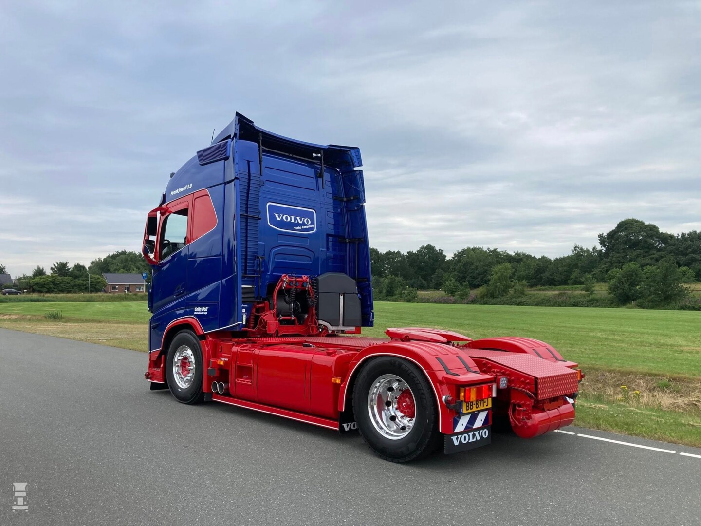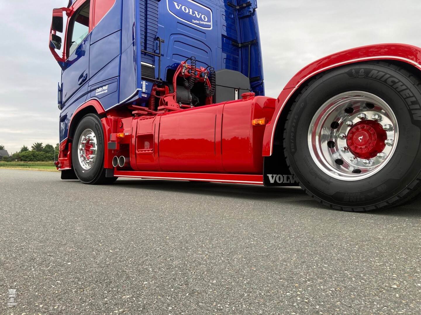 Het resultaat mag gezien worden, zeker in de geslaagde kleurstelling. De trekker werd door SR Truckopbouw voorzien van een vlonder over het chassis met een dichtgemaakte achterkant. Verder werden er latten onderlangs gemaakt en werden er rechts 'Deense' kisten gemonteerd. De uitlaat werd naar buiten gebracht en heeft een fraai dubbel eindstuk. Geen Aero neusje dus, en geen zijfenders maar wel gewoon een hele strakke trekker.