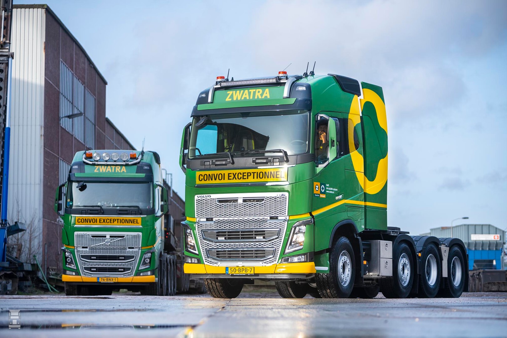 Zwatra Transport beschikt nu over drie Volvo FH16 zwaartransport trekkers. Naast de twee 8x4-configuraties werd onlangs ook een Volvo FH16 750 10x4-trekker in gebruik genomen, die eveneens is voorzien van de I-Shift-versnellingsbak en Heavy Duty-schakelsoftware. Bij de opeenvolgende keuze voor Volvo-trucks speelt behalve de kwaliteit van de trucks ook de ondersteuning van Volvo Group Truck Center een belangrijke rol. “De accountmanager adviseert ons uitgebreid over alle technische mogelijkheden, ook in relatie met toegestane aslasten en regelgeving in Nederland en het buitenland. Bovendien is onze ervaring dat de dealer altijd klaarstaat als wij ze nodig hebben. Is er op vrijdagmiddag iets met een truck die we op maandagochtend per se nodig hebben? Dan wordt er alles aan gedaan om het voor elkaar te krijgen.”