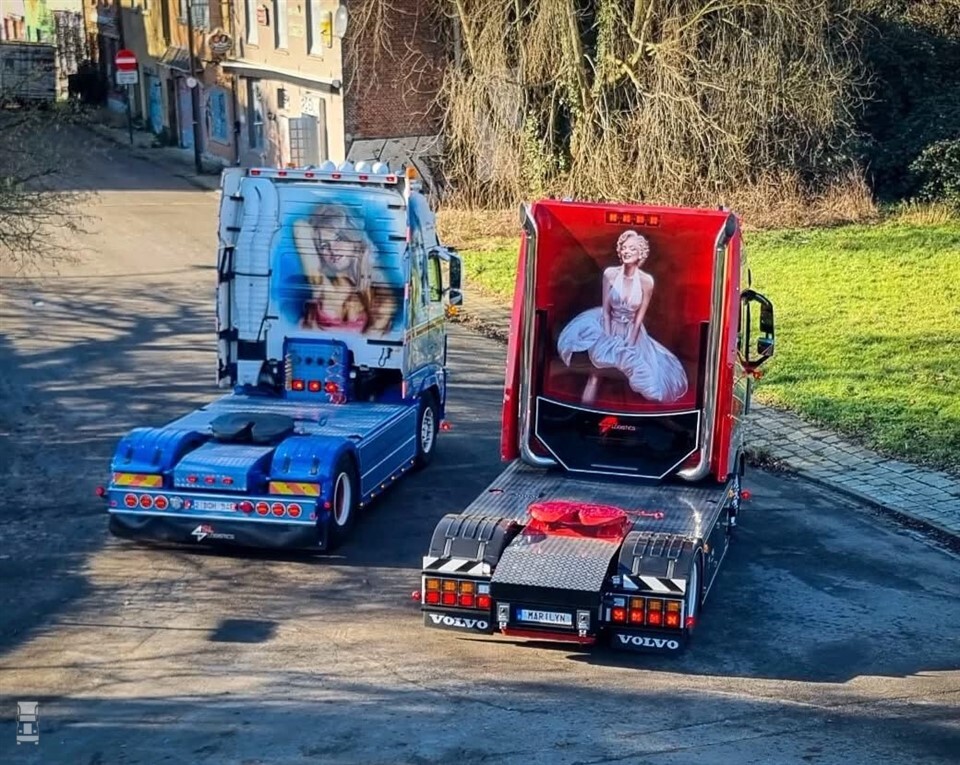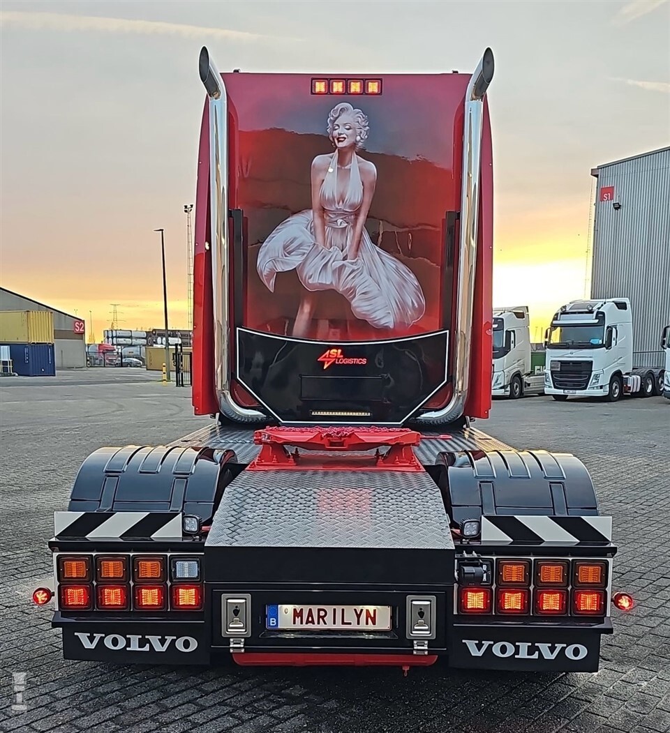 Nu is die Volvo met Marilyn Monroe er toch. Niet in de kleuren van Van Gijsels toenmalige bedrijf KVG-Trans, maar in de nieuwe kleuren van SL Logistics. Met spectaculair spuitwerk van MW Design is de Volvo FH16 780 Aero niet alleen een eerbetoon geworden als Marilyn Monroe, maar ook aan Walter Vergauwen.
