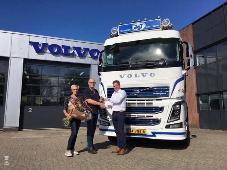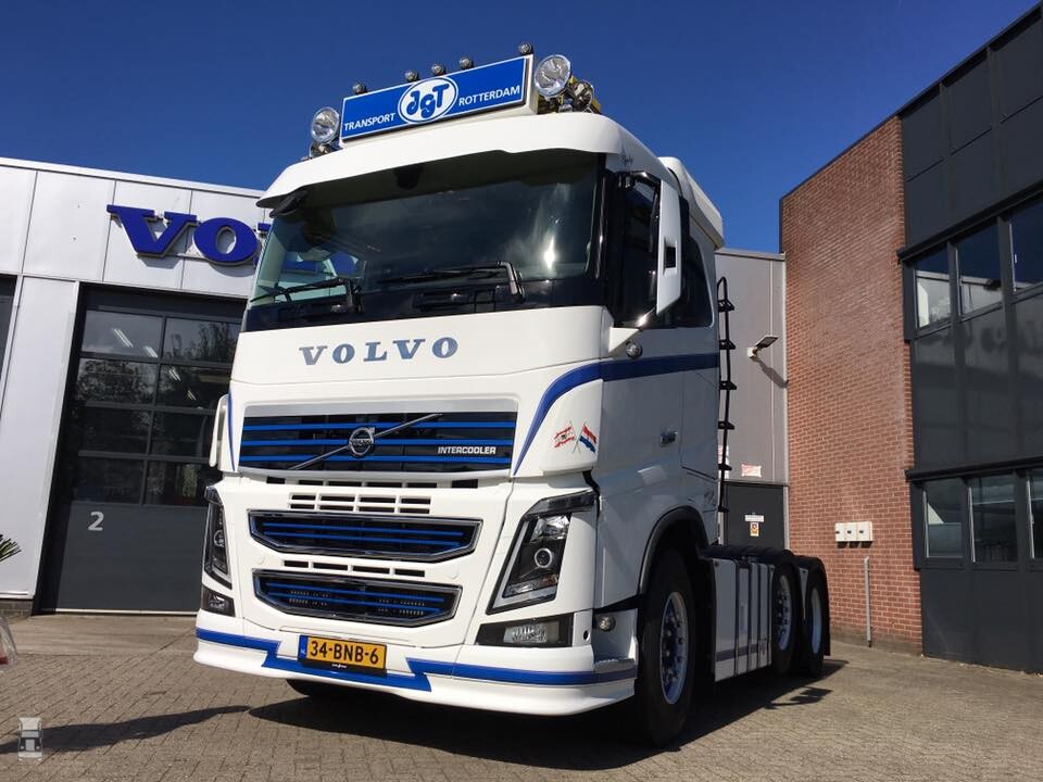 Gerard en Sjoukje Kolstein hebben een fraaie Volvo FH16 voorloopas trekker in gebruik genomen. De stoere Zweed is uitgerust met de standaard slaapcabine, dus met het lage dak. Met het dakrekje met de fraaie lichtbak, de daklampen en luchthoorns en de staande pijp achter de cabine ontstaat zo een fraaie 'oldskool' look.