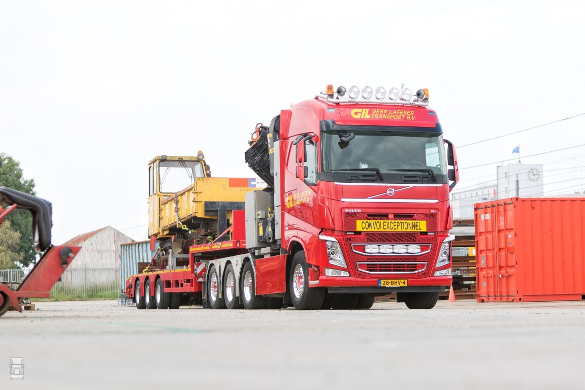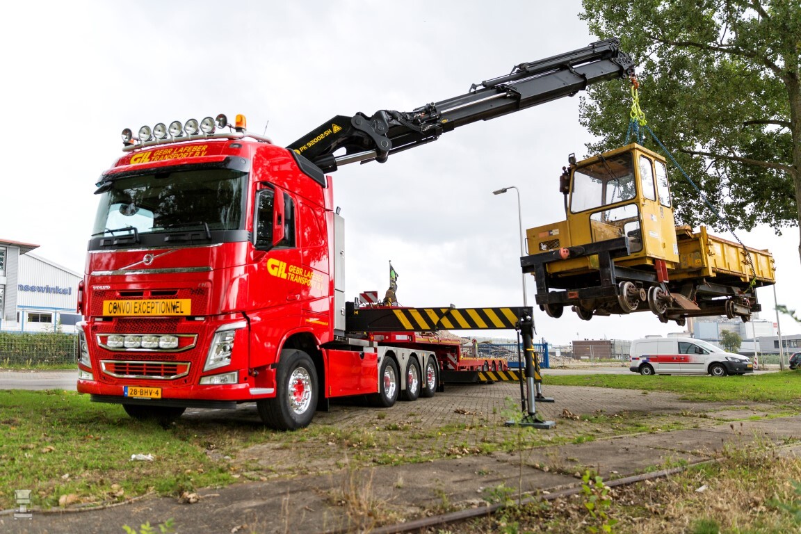 Achter de Globetrotter cabine van de Volvo staat een zware Palfinger PK 92002-SH-F autolaadkraan met een capaciteit van 92 ton/meter. Directeur Bas Lafeber: ‘Wij zochten een compacte, wendbare trekker, waar een heel zware autolaadkraan op moest worden gemonteerd. Van Dijk Trucks Woerden kreeg van ons de ruimte en het vertrouwen om dit naar eigen inzicht zo goed mogelijk in te vullen. Vertegenwoordiger Roel Hoogendoorn heeft dit perfect opgepakt. Het was een heel plezierig traject. Met de nieuw aangeschafte combinatie kunnen we de klant nog beter van dienst zijn. De Volvo FH is zeer multifunctioneel: exceptionele ladingen, betonbielzen, maar ook graafmachines kunnen worden vervoerd, in zowel binnen- als buitenland.’