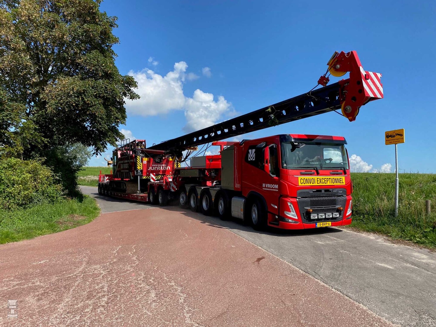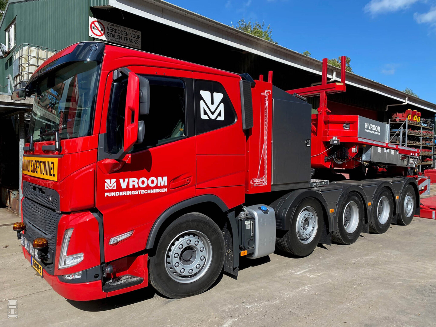 De eerste nieuwe generatie Volvo FM vijf-assige zwaartransporttrekker is het ‘nieuwe rood in de vloot’ van Vroom Funderingtechnieken B.V. De onderneming in paalsystemen en prefab funderingsconstructies kiest bewust opnieuw voor de FM met lage cabine voor het transport van zeer zware funderingsmachines en andere ondeelbare ladingen. “Deze truck past bij onze werkzaamheden en behoeften”, zegt René Vroom, Manager Materieel Logistiek, Service & Onderhoud bij Vroom Funderingstechnieken B.V. Een nieuwe Nooteboom Euro 122-24-dieplader (2 bed 4) maakt het span compleet.