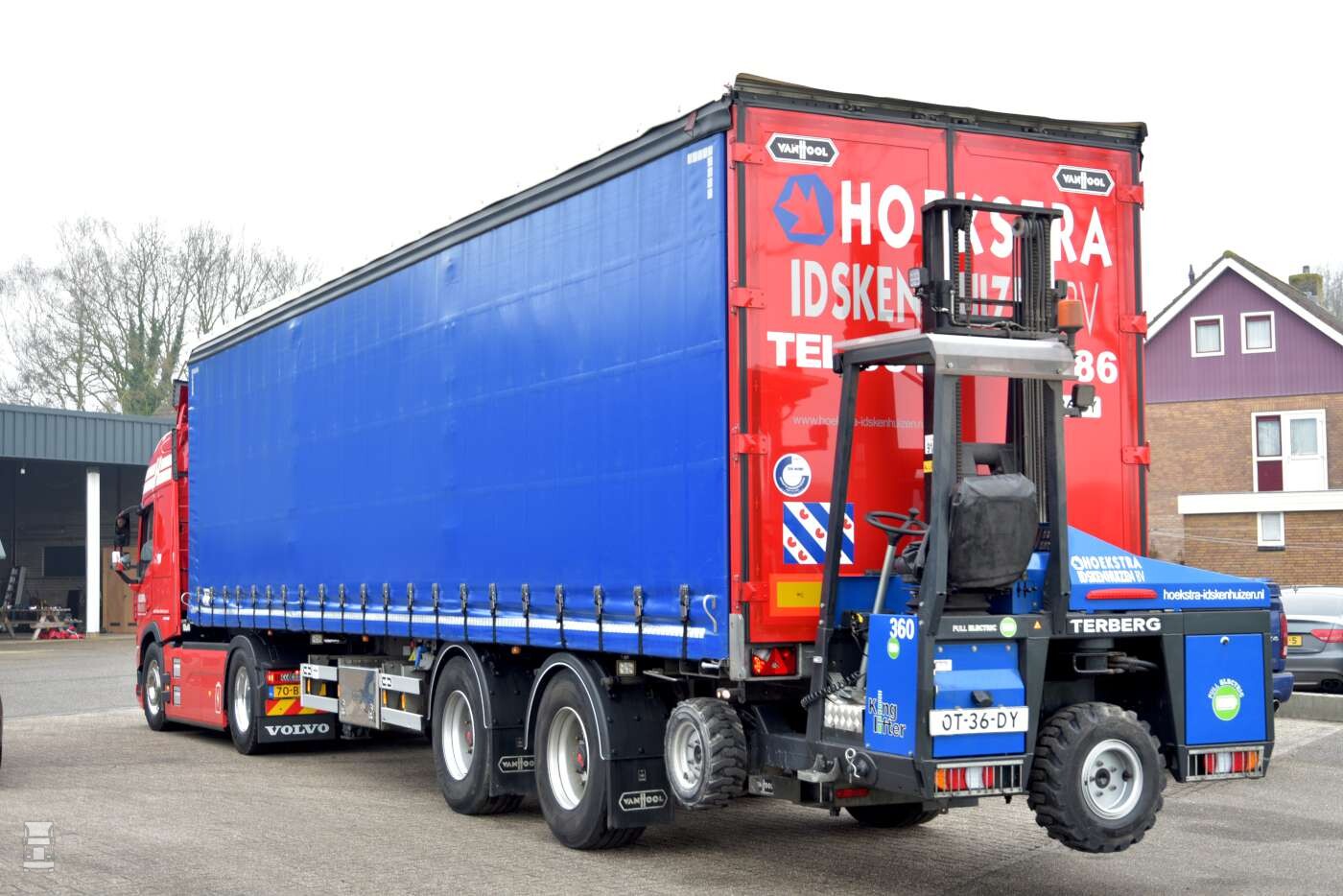 ,,Wij hebben nog geen vaste klanten voor deze truck maar wij willen vooral laten zien dat het kan, ook nu al’’ aldus Jacco Hoekstra. Hij runt het bedrijf met zijn neef Rouke en zijn vader Anne Hoekstra. Jacco: ,,Wij rijden bijvoorbeeld met bouwmaterialen en dakbedekkingsmaterialen, waarbij we ook regelmatig woonwijken in moeten. Met deze elektrische truck zou dat ideaal zijn, vooral in combinatie met de elektrische Terberg King Lifter meeneemheftruck. Onze vaste klanten hebben wel belangstelling voor elektrisch transport, maar die willen eerst zien wat er mogelijk is. Dat is nou precies wat wij willen doen met deze eerste elektrische Volvo in onze vloot’’.