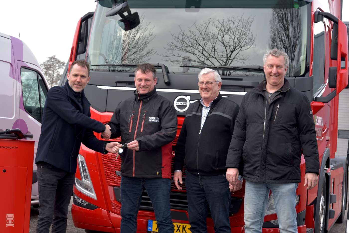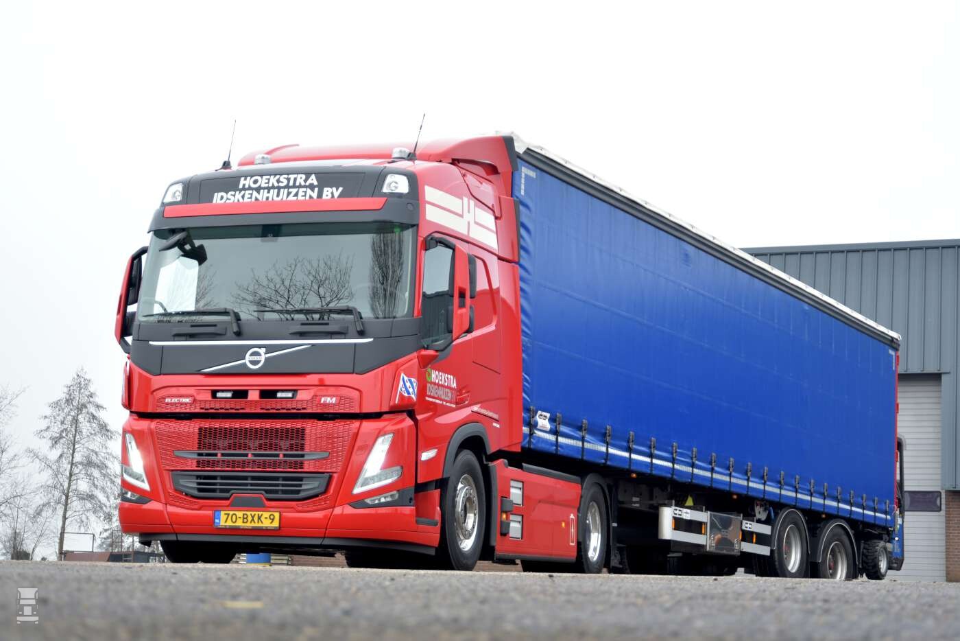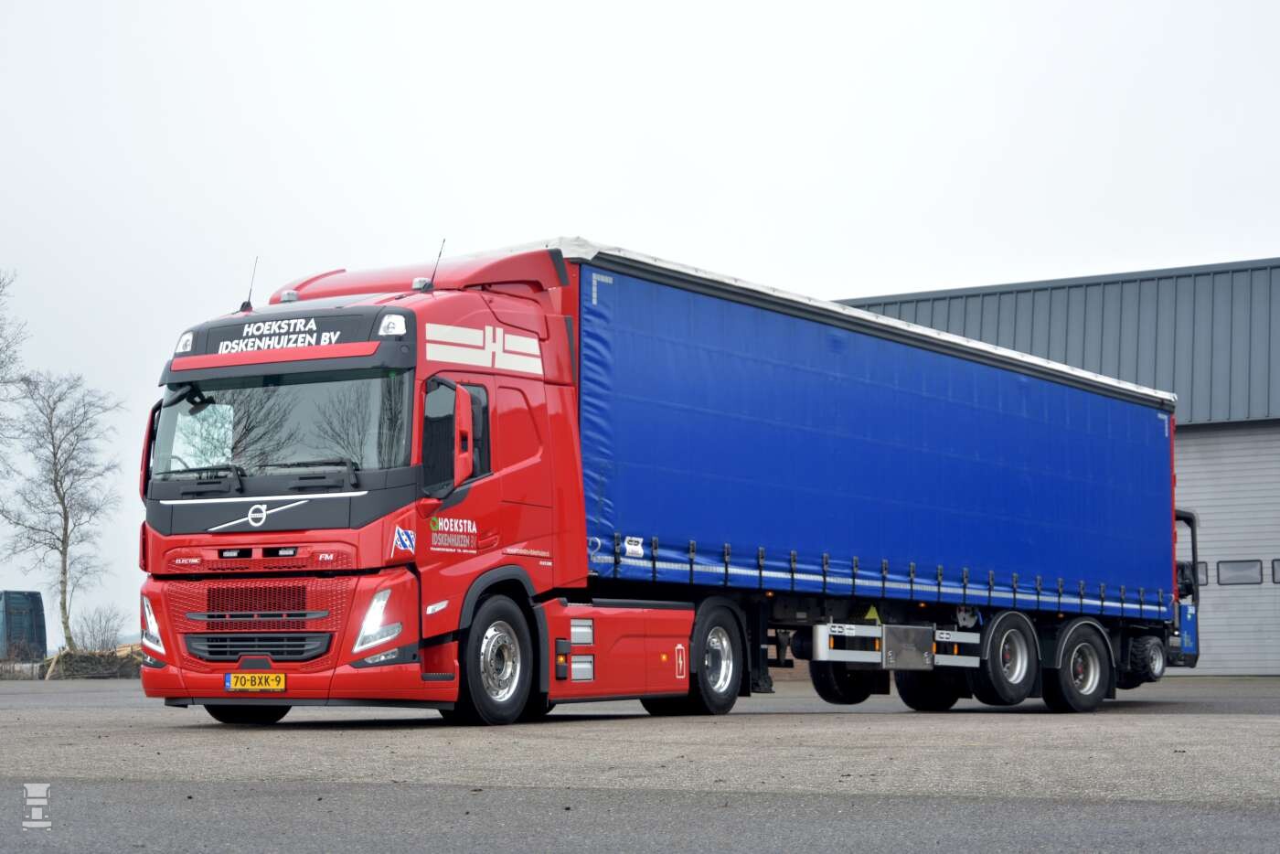 De Volvo FM electric werd geleverd door Volvo Trucks dealer LVS in Heerenveen. De truck is voorzien van zes accu’s met een totale inhoud van 540 kWh. Dat zou voldoende moeten zijn voor een afstand van rond de 300 kilometer, afhankelijk van het weer, het gewicht van de lading en uiteraard rijstijl van de chauffeur. Voor dat laatste krijgt Jacco ondersteuning vanuit LVS met een chauffeurscoach. De truck onderweg opladen kan tot maximaal 250 kWh. Om thuis op te kunnen laden heeft Hoekstra Idskenhuizen BV een lader die aangesloten wordt op krachtstroom. Daarmee kan er tot 43 kWh geladen worden, wat gedurende de nachtrust voldoende is. ,,Het voordeel van deze lader is dat hij ook eenvoudig bij een klant opgesteld kan worden. De compacte unit kan eenvoudig meegenomen worden, wat de mogelijkheden om te laden vereenvoudigt. De lader werkt zowel op 32 als op 64 ampère ’’ aldus Siebren Zijlstra van Heycharging.com, de leverancier van de lader.