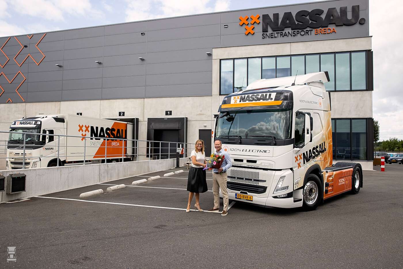 De Volvo FM electric trekkers zijn voorzien van een fraaie wrap, waardoor het gewoon leuke trucks zijn om te zien. Nassau koos ook voor een zonneklep, waarmee een truck er altijd beter uit ziet!